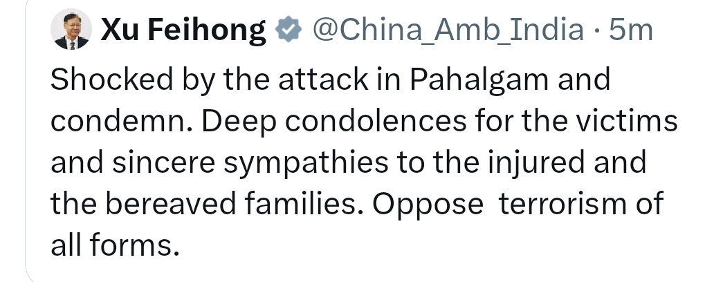 अंतरराष्ट्रीय चीन ने की पहलगाम आतंकी हमले की निंदा, कहा- ‘आतंकवाद के सभी रूपों का विरोध किया जाना चाहिए’ Posted on April 23, 2025 Author admin Comment(0)