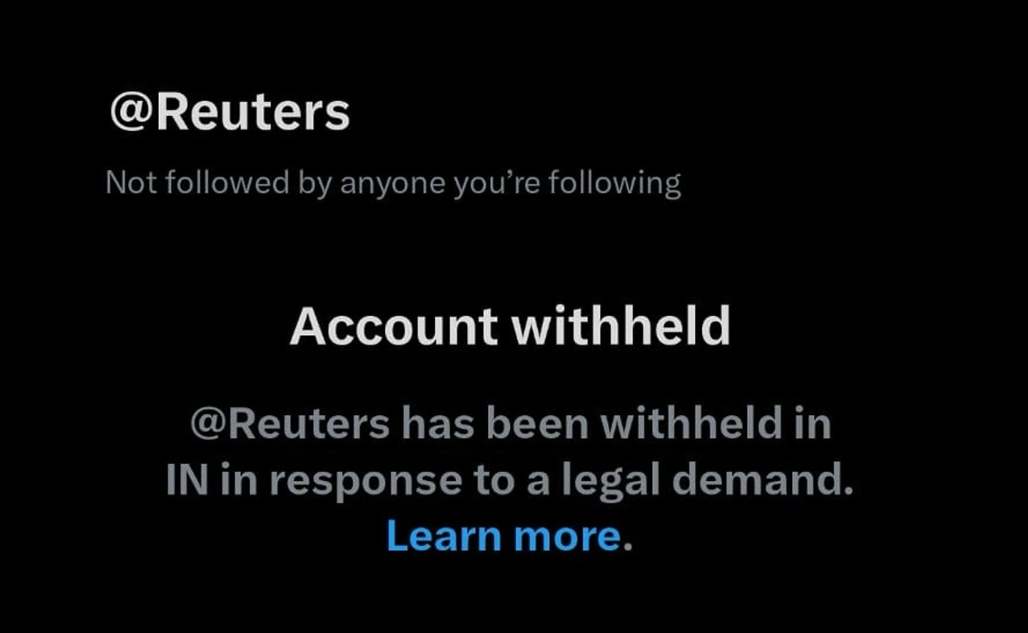 माना जा रहा है कि सिर्फ भारत में ही यह कार्रवाई की गई है क्योंकि भारत के बाहर लोग Reuters के X हैंडल को एक्सेस कर सकते हैं।