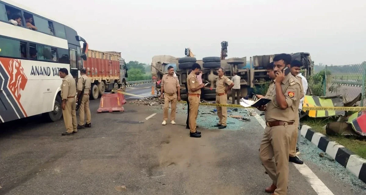 डेस्क :नोएडा के थाना दनकौर क्षेत्र में यमुना एक्सप्रेसवे पर एक ट्रक ने एंबुलेंस को टक्कर मार दी जिससे दो लोगों की मौत हो गई। पुलिस ने यह जानकारी दी। थाना दनकौर के प्रभारी निरीक्षक मुनेंद्र कुमार सिंह ने बताया कि यमुना एक्सप्रेस पर एक ट्रक चालक ने बिना ‘इंडिकेटर’ दिए हुए वाहन को अचानक मोड़ दिया जिससे पीछे से आ रही एक एंबुलेंस उससे टकरा गई।उन्होंने बताया कि इस हादसे में एंबुलेंस चालक जितेंद्र उर्फ सानी धामी (38) एवं सहचालक कमलदीप उर्फ कमल (40) की मौत हो गई। वे दोनों पंजाब के रहने वाले थे।
