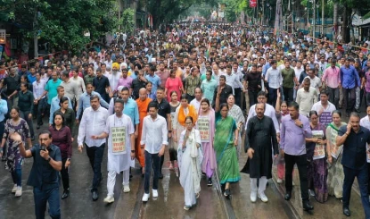डेस्क :अपनी बंगाली पहचान का राग अलापते हुए पश्चिम बंगाल की मुख्यमंत्री ममता बनर्जी ने बारिश में भीगते हुए भाजपा शासित राज्यों में बंगाली भाषी लोगों के कथित उत्पीड़न के खिलाफ कोलकाता में एक विशाल विरोध मार्च निकाला। कोलकाता के मध्य में आयोजित यह विरोध मार्च एकता का भी प्रदर्शन था क्योंकि इसमें अभिषेक बनर्जी सहित सत्तारूढ़ तृणमूल कांग्रेस के सभी शीर्ष नेता शामिल हुए। लगातार बारिश के बीच तृणमूल सुप्रीमो और अन्य नेताओं के तीन किलोमीटर लंबे रास्ते पर बीजेपी, छी छी (शर्म करो बीजेपी) के नारे गूंज रहे थे। लगभग 1,500 पुलिसकर्मी पूरे रास्ते पर पहरा दे रहे थे। रैली के बाद, ममता ने जनसभा को संबोधित करते हुए केंद्र को चुनौती दी कि वह उन्हें डिटेंशन कैंप में डाल दे