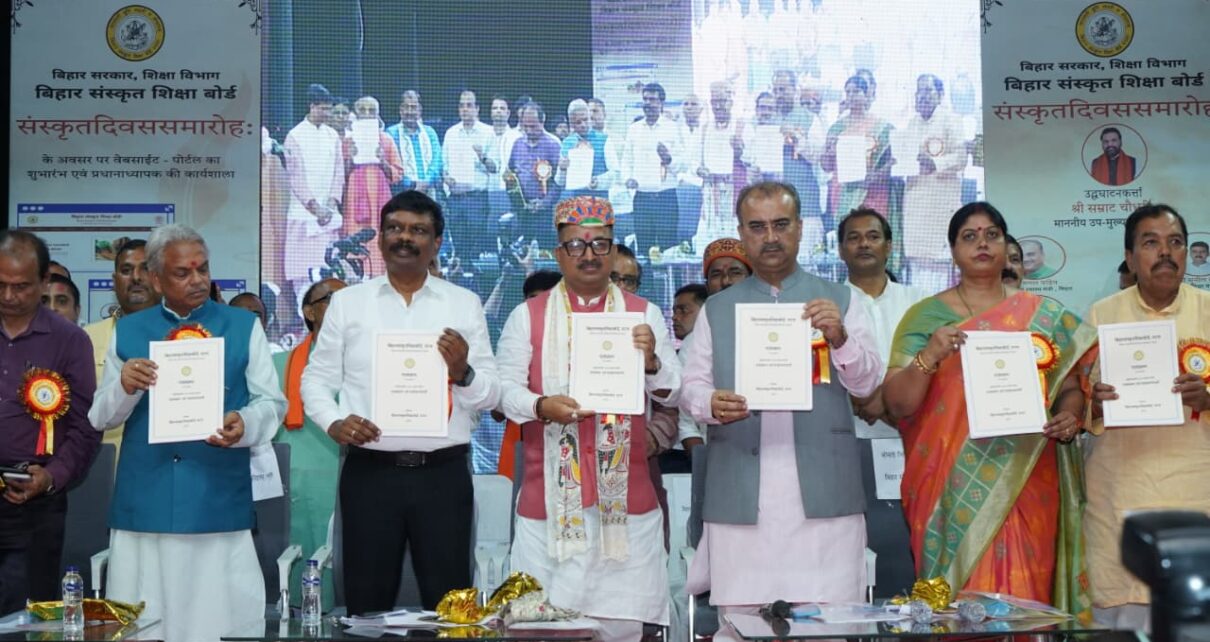 दरभंगा। केएसडीएसयू के कुलपति प्रो.लक्ष्मीनिवास पाण्डेय ने आज कहा कि संस्कृत है तो संस्कृति है। इसके विकास व संवर्धन के हर सम्भव प्रयास जारी रहना चाहिए। बिहार संस्कृत शिक्षा बोर्ड, पटना द्वारा रविन्द्र भवन में संस्कृत दिवस समारोह के अवसर पर आयोजित कार्यशाला को सम्बोधित करते हुए मंगलवार को उन्होंने उक्त बातें कही। कार्यक्रम में उपमुख्यमंत्री, मंत्री व बिहार सरकार के उच्च पदस्थ पदाधिकारियों की मौजूदगी में उन्होंने वर्तमान परिप्रेक्ष्य में संस्कृत भाषा की उपयोगिता पर बल दिया। उन्होंने विद्यालयों में संस्कृतमय वातावरण निर्माण करने तथा छात्रों के बीच भाषा प्रवाहित के लिए दस दिवसीय संस्कृत सम्भाषण आयोजित करने का भी सुझाव दिया। कुलपति ने इसके अलावा और कई सुझाव दिए जिससे संस्कृत का विकास आसान होगा। उन्होंने यह भी कहा कि जाने अनजाने में हमलोग देवभाषा कहकर संस्कृत से विमुख होते चले गए। अब भी समय है इस सोच में बदलाव लाया जाये। अन्यथा और विकट स्थिति हो जाएगी। इसे व्यवहार में लाने का प्रयास करना होगा। उक्त जानकारी देते हुए पीआरओ निशिकांत ने बताया कि संस्कृत जगत से जुड़ी कई समस्याओं को भी कुलपति ने शिक्षा विभाग के अपर सचिव के समक्ष रखा और समाधान का भी अनुरोध किया। बता दें कि संस्कृत शिक्षा बोर्ड ने नए पाठ्यक्रम को आज हरि झंडी दे दी है। कार्यक्रम के दौरान ही इसे विमोचित किया गया। संस्कृत विश्वविद्यालय के पूर्व कुलानुशासक व धर्मशास्त्र विभाग के अध्यक्ष प्रो0 श्रीपति त्रिपाठी एवं सहायक प्राध्यापक डॉ रामसेवक झा भी नए पाठ्यक्रम निर्माण समिति के सदस्य के रूप में कार्यक्रम में उपस्थित थे। इन दोनों सदस्यों को वहां सम्मानित भी किया गया।