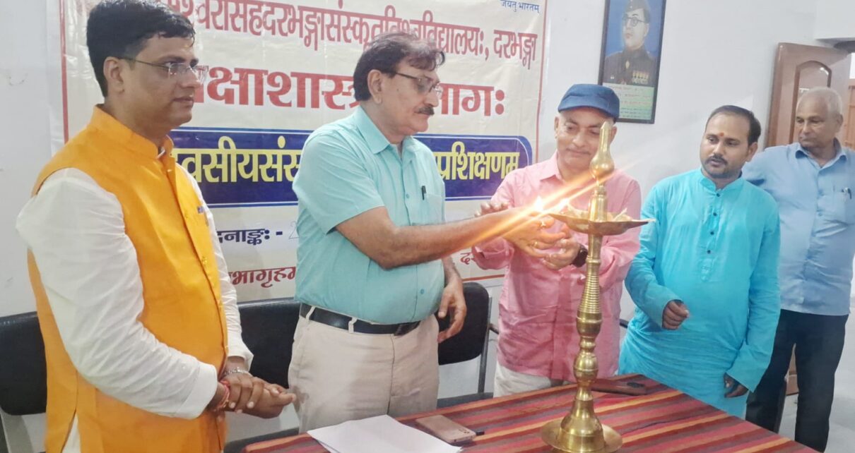 वहीं,अध्यक्षीय उद्बोधन में शिक्षाशास्त्र विभाग के निदेशक डॉ.घनश्याम मिश्र ने कहा कि संस्कृत केवल ग्रन्थों की भाषा न रहकर व्यवहार की भाषा बने इसके लिए संस्कृत सम्भाषण प्रशिक्षण की महती भूमिका है । संस्कृत को कठिन मानने की मानसिकता को बदलकर इसे सरल एवं सुबोध सिद्ध करने के लिए प्रत्यक्ष पद्धति से संस्कृत सम्भाषण का जो प्रशिक्षण शुरु हुआ है उसमें सभी छात्र नियमित रूप से उपस्थित होकर इसका लाभ लें ।यह कार्य छात्रों के मूल्यांकित अंशों में भी समाहित किया जाएगा । इसी क्रम में सम्भाषण प्रशिक्षण वर्ग के संयोजक डॉ. रामसेवक झा ने कहा कि शैक्षिक सत्र 2025-27 में विभिन्न विधाओं से प्रवेश परीक्षा उतीर्ण कर नूतन छात्रों का वर्गारम्भ 19 अगस्त से हुआ है । माननीय कुलपति प्रो.लक्ष्मीनिवास पाण्डेय द्वारा दिये गये निर्देश के आलोक में सभी छात्रों के मुख में सर्वप्रथम संस्कृत भाषा हो ,जिससे उन्हें आगे दो वर्षों तक कक्षा अध्ययन में भी सुविधा होगी। इसी दृष्टि से यह दस दिवसीय प्रशिक्षण शुरु किया गया है ।
