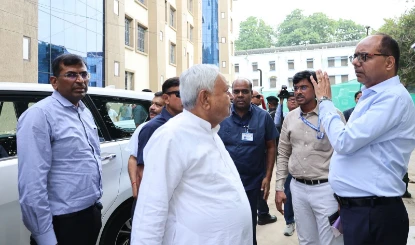डेस्क :पटना। मुख्यमंत्री नीतीश कुमार ने आज पटना सिटी के गुरू गोविंद सिंह सदर अस्पताल परिसर में निर्माणाधीन मॉडल अस्पताल भवन का निरीक्षण किया और निर्माण कार्य जल्द से जल्द पूर्ण करने का निर्देश दिया। निरीक्षण के दौरान मुख्यमंत्री ने निर्माणाधीन मॉडल अस्पताल के निर्माण कार्यों के बारे में विस्तृत जानकारी ली। इस दौरान अधिकारियों ने मुख्यमंत्री को बताया कि यह 100 बेड का पांच मंजिला मॉडल अस्पताल होगा, जिसमें मरीजों के इलाज की आधुनिक सुविधायें होंगी