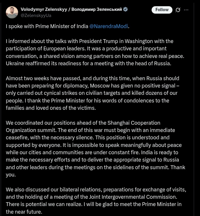 अंतरराष्ट्रीय SCO शिखर सम्मेलन शुरू होने से पहले यूक्रेनी राष्ट्रपति जेलेंस्की ने पीएम मोदी को किया फोन Posted on August 30, 2025 Author admin Comment(0)
