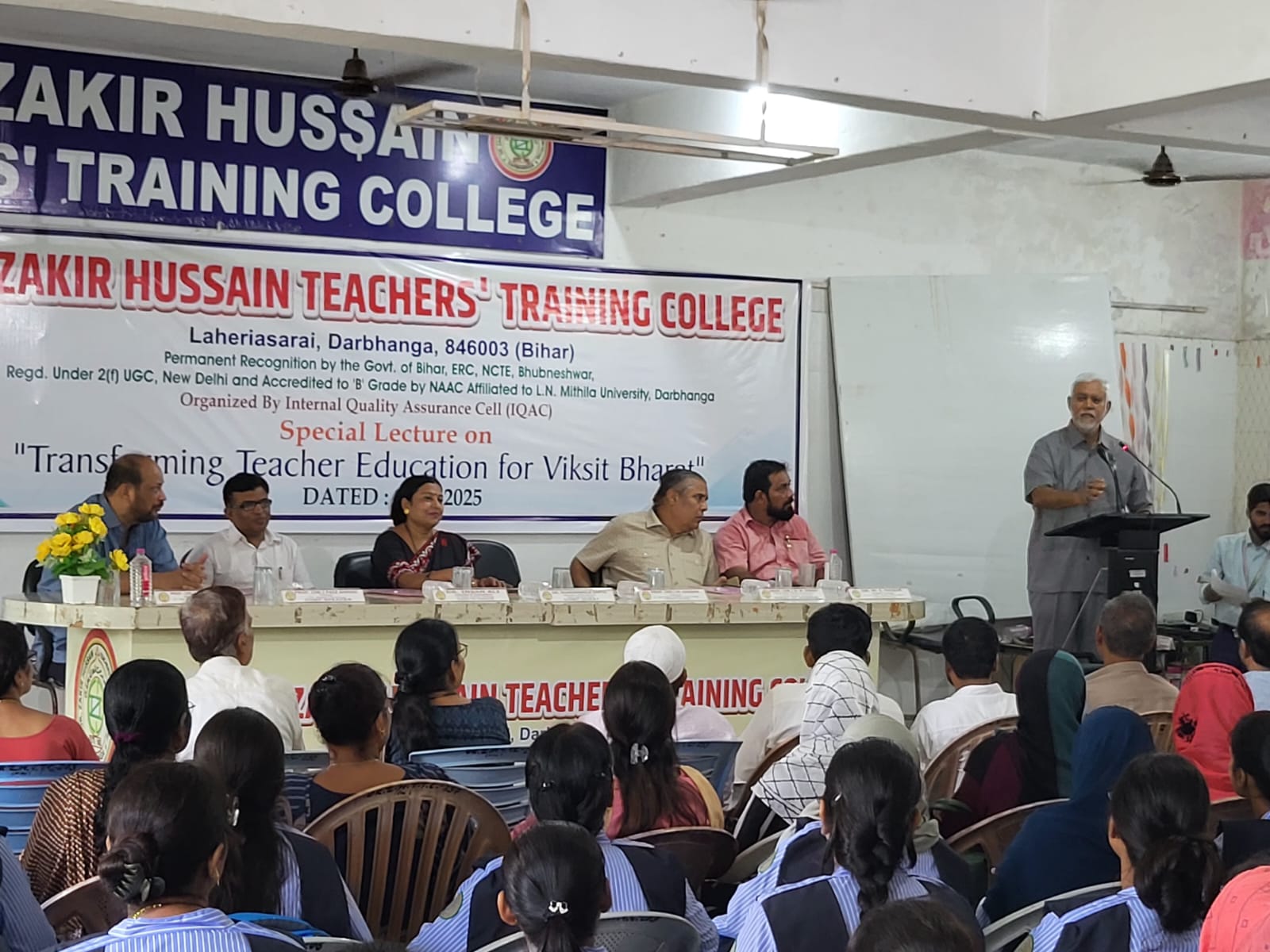 दरभंगा : डॉ. ज़ाकिर हुसैन टीचर्स ट्रेनिंग कॉलेज, लहेरियासराय, दरभंगा में बीएड सत्र : 2025-27 के नवप्रवेशी छात्र-शिक्षकों के लिए आयोजित ओरिएंटेशन कार्यक्रम के अंतर्गत ‘विकसित भारत के लिए शिक्षक शिक्षा में परिवर्तन’ विषय पर एक प्रेरणादायक व्याख्यानमाला का आयोजन किया गया।