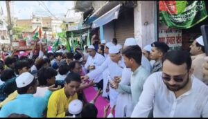 दरभंगा। शहर में शानदार जुलुस ए मोहम्मदी का हुआ आयोजन अंजुमन खुद्दाम ए मिल्लत के द्वारा किया गया था। जिसमे लाखो की संख्या में मुस्लिम समुदाय के लोगो ने भाग लेकर इस बार अल्लाह के रसूल हजरत मोहम्मद साहब के 1500 वे यौमे पैदाइश जन्मदिन को भव्य रूप में मनाया। जगह जगह पानी, शरबत की व्यवस्था और जलेबी और बुनिया भी जुलुस में चल रहे लोगो को दिया गया। इस बार विशेष रूप से दरभंगा टावर चौक पर लोगो के लिए पानी शरबत के साथ साथ फल बांटे गए। अपने हाथो से पूर्व पार्षद सह सचिव,मदरसा हमीदिया किलाघाट,डब्बू खान,पूर्व महासचिव दरभंगा जिला मोहर्रम कमिटी तनवीर आलम,सैय्यद महताब अशरफ, ओवैसी करीम फिरोज खान,पप्पू खान लोगो को फल और पानी देते हुए देखे गए। मौके पर साथ में सरफे आलम उर्फ तमन्ना, डॉ इकबाल हसन रिसू,अध्यक्ष मदरसा हमीदिया किलाघाट,खालिद रजा,आफताब आलम,मो. समसूजोहा उर्फ़ लाडले सहित अन्य लोगो ने सहयोग करते और पानी और फल जुलुस में शामिल लोगो व बच्चों को दे रहे थे। इस तरह का आयोजन करने से लोगो में ख़ुशी देखी गई और सराहना की गई।