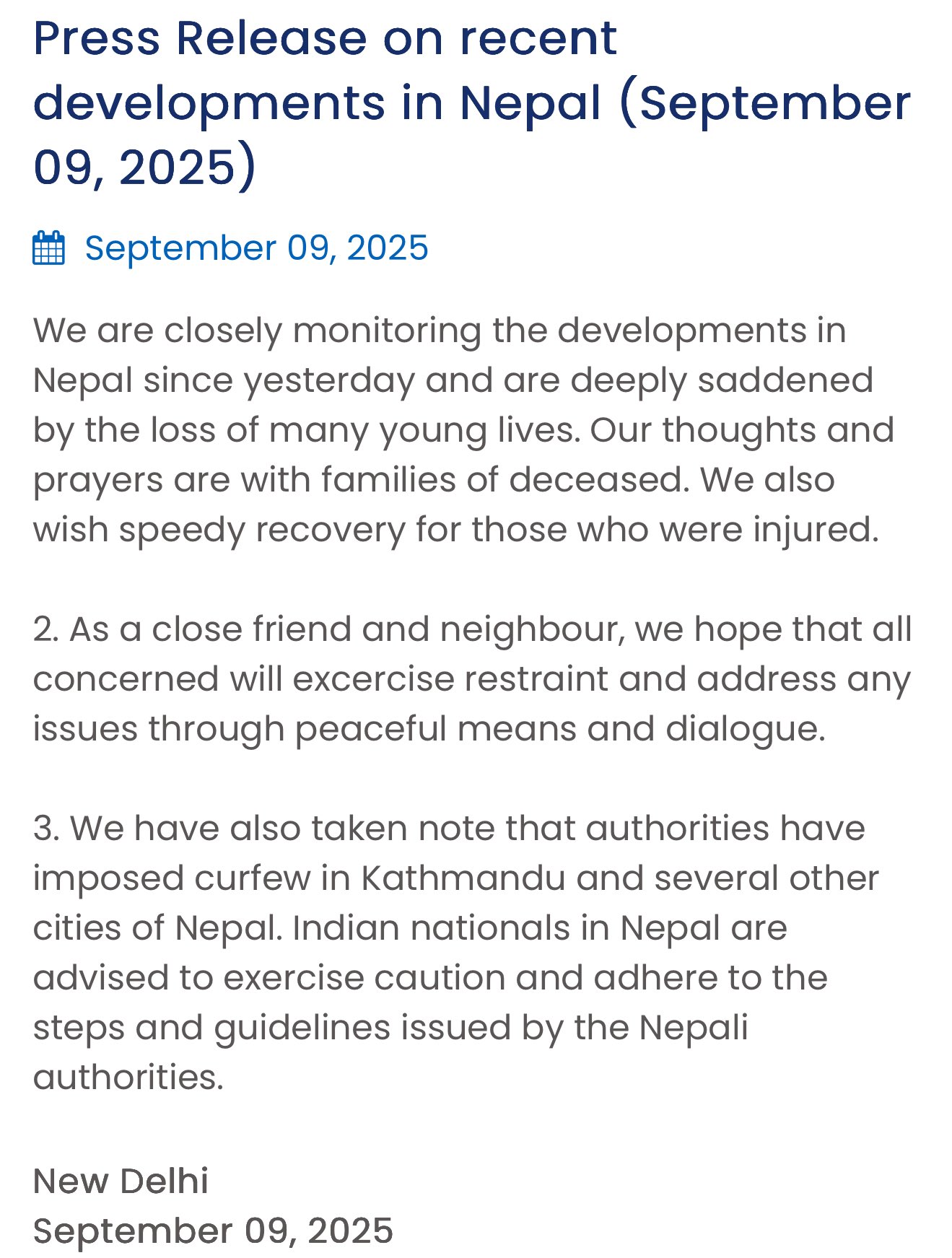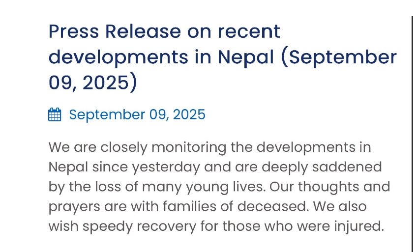 अंतरराष्ट्रीय नेपाल के हालात पर भारत सरकार ने जारी किया आधिकारिक बयान Posted on September 9, 2025 Author admin Comment(0)
