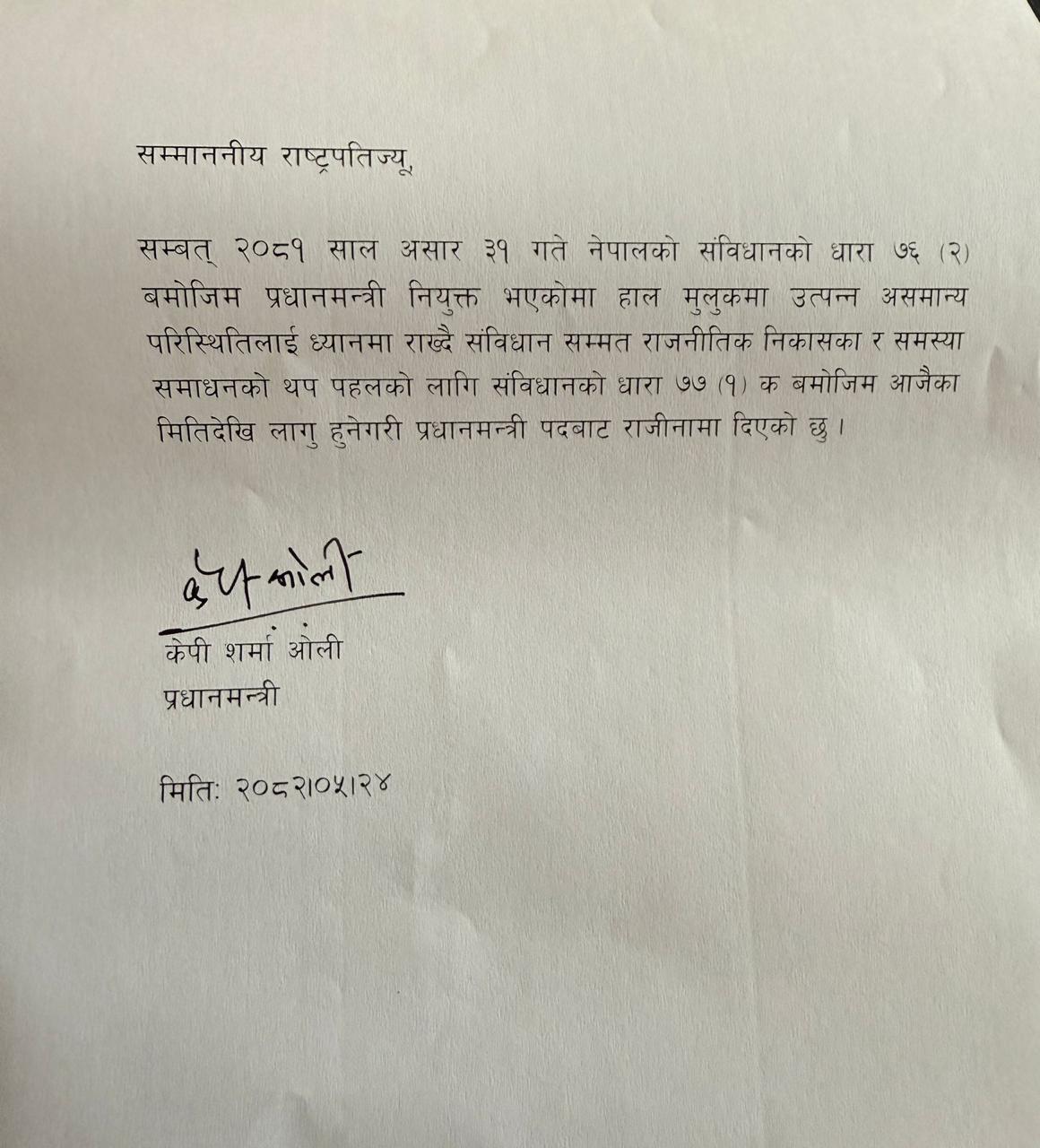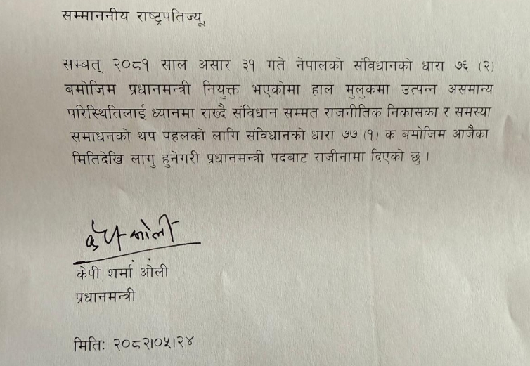 अंतरराष्ट्रीय नेपाल : पीएम ओली ने दिया इस्तीफा, देखें राष्ट्रपति को संबोधित पत्र Posted on September 9, 2025 Author admin Comment(0)