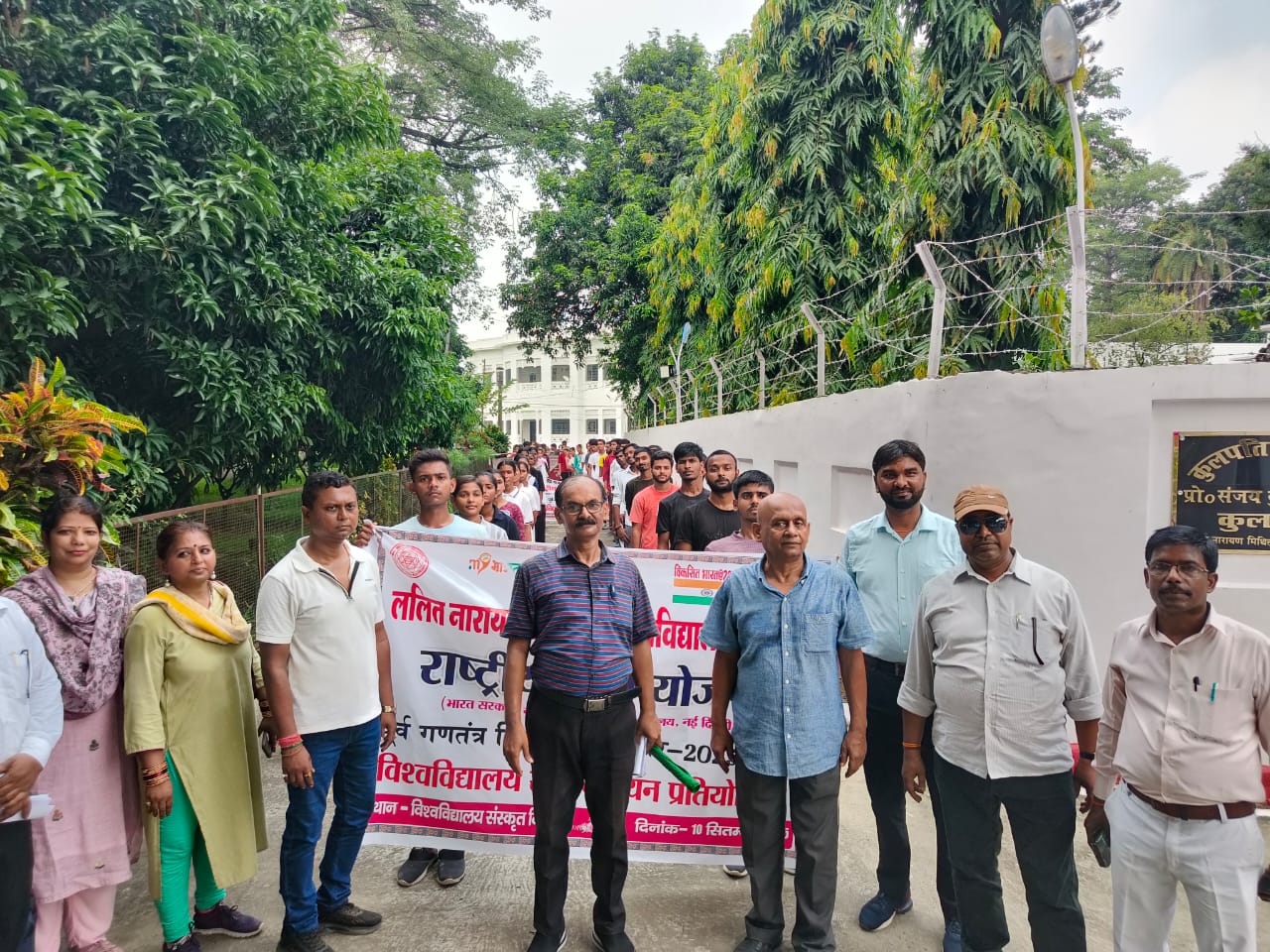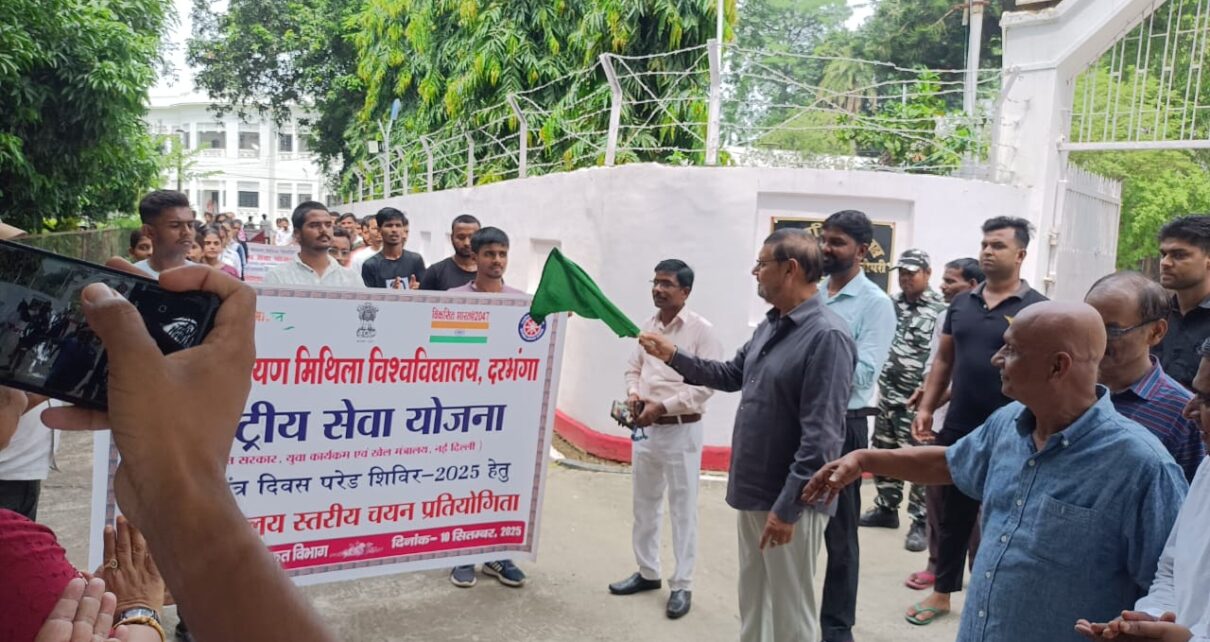 दरभंगा : ललित नारायण मिथिला विश्वविद्यालय, दरभंगा के कुलपति प्रोफेसर संजय कुमार चौधरी ने पूर्व गणतंत्र दिवस परेड शिविर- 2025 के लिए दरभंगा, मधुबनी, समस्तीपुर एवं बेगुसराय जिले के विभिन्न कॉलेजों से विश्वविद्यालय स्तरीय चयन प्रतियोगिता हेतु आए हुए एनएसएस के छात्र- छात्राओं को बेहतर प्रदर्शन हेतु शुभकामना देते हुए कहा कि हमारे छात्र एवं छात्राएं गत वर्षों की तरह ही इस बार भी गणतंत्र दिवस परेड शिविर में बेहतरीन प्रदर्शन करेंगे। कुलपति ने स्वयंसेवकों को हरी झंडी दिखाकर दौड़ तथा परेड हेतु विदा करते हुए छात्रों से अनुशासन में रहकर कड़ी मेहनत से न केवल पढ़ाई में बल्कि अन्य प्रदर्शनों में भी अपने महाविद्यालय, विश्वविद्यालय तथा पूरे समाज का नाम रोशन करने का आह्वान किया। कुलपति ने गणतंत्र दिवस परेड शिविर हेतु स्वयंसेवकों के चयन प्रक्रिया, इतिहास एवं उद्देश्यों के बारे में कार्यक्रम समन्वयक डॉ आर एन चौरसिया एवं उपस्थित एनएसएस पदाधिकारियों से जानकारी प्राप्त कर स्वयंसेवकों को बधाई देते हुए उनका हौसला अफजाई किया। इस अवसर पर ललित कला संकाय के अध्यक्ष प्रो पुष्पम नारायण, कुलसचिव डॉ दिव्या रानी हंसदा, डॉ गीतेन्द्र ठाकुर, डॉ अनिल कुमार चौधरी, डॉ रश्मि शिखा, एनसीसी, 8 बिहार बटालियन, दरभंगा के सूबेदार जगत सिंह, नेहरु युवा केन्द्र, दरभंगा के मुकेश कुमार झा, कार्यक्रम पदाधिकारी- डॉ लक्ष्मण यादव, डॉ बिभा कुमारी, डॉ श्याम सुंदर शर्मा, डॉ अनुपम प्रिया, डॉ अमित कुमार सिन्हा, डॉ अविनाश कुमार तथा डॉ दिलीप कुमार झा सहित 100 से अधिक छात्र-छात्राएं उपस्थित थे।