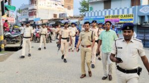 आगामी दुर्गा पूजा को लेकर लहेरियासराय स्थित पुलिस लाइन से डीएम एसएसपी के नेतृत्व में निकल गई फ्लैग मार्च