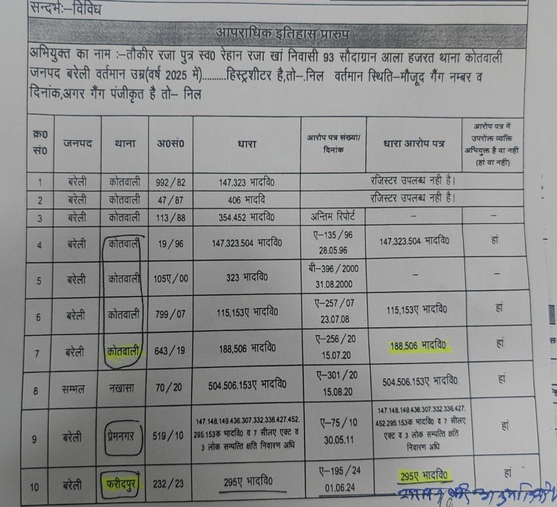 अन्य उत्तर प्रदेश UP : बरेली हिंसा मामले में गिरफ्तार मौलाना तौकीर रजा पर अब तक दर्ज मुकदमों की देखें लिस्ट Posted on September 28, 2025September 28, 2025 Author admin Comment(0) मौलाना तौकीर रज़ा का आपराधिक इतिहास सामने आया है। उनके खिलाफ पहली एफआईआर 1996 में दंगे फैलाने के आरोप में दर्ज की गई थी। 26 सितंबर को बरेली में हुए उपद्रव के बाद उनके खिलाफ सात नई एफआईआर दर्ज की गई हैं।