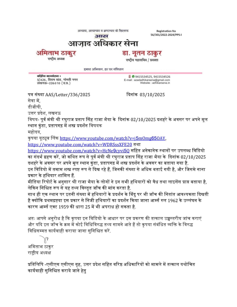 उन्होंने इसे आर्म्स एक्ट 1959 (Arms Act 1959) और आर्म्स रूल्स 1962 (Arms Rules 1962) का उल्लंघन बताया है. साथ ही, वीडियो में दिख रही गतिविधियों के आधार पर प्रशासन से उचित कार्रवाई की मांग की है.