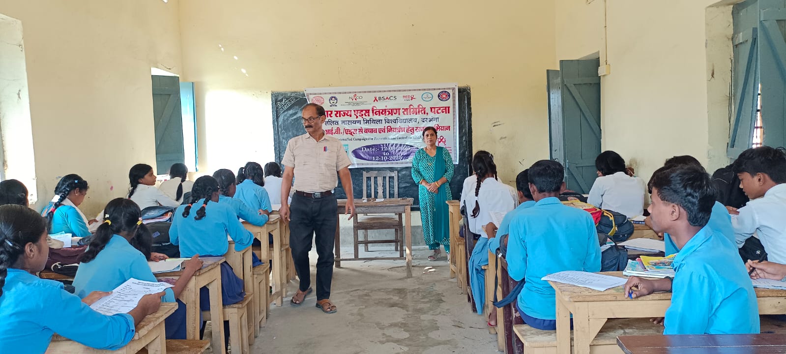 दरभंगा : बिहार राज्य एड्स नियंत्रण समिति, पटना के सौजन्य से ललित नारायण मिथिला विश्वविद्यालय, दरभंगा के एनएसएस कोषांग अधीन कार्यरत रेड रिबन क्लब के तत्त्वावधान में चल रहे एचआईवी/एड्स जागरूकता सघन कार्यक्रम के अंतर्गत आज राधा स्वामी मध्य विद्यालय, रत्नोपट्टी, दरभंगा परिसर में छात्रों के बीच क्विज एवं भाषण प्रतियोगिता का आयोजन किया गया। प्रतियोगिता का शुभारंभ करते हुए प्रधानाध्यापक आरिफ हुसैन ने कहा कि एड्स एक घातक रोग है, पर इसका रोकथाम संभव है। समय पर जांच, उपचार तथा सावधानी बरतने से इसे नियंत्रित किया जा सकता है। उन्होंने कहा कि यद्यपि एड्स का पूर्ण इलाज संभव नहीं है, पर एटीआर से वायरस की वृद्धि रोककर रोगी के जीवन को लंबा एवं सामान्य बनाया जा सकता है।