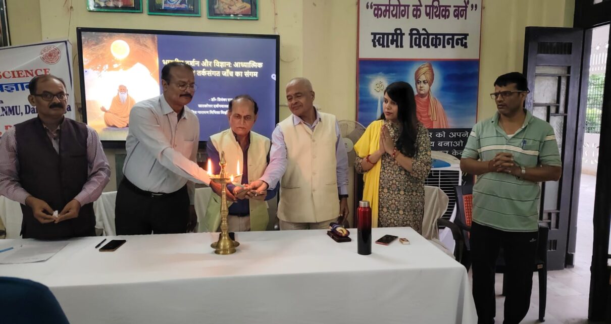 अध्यक्षीय संबोधन में डॉ. कृष्णकांत झा ने कहा कि दर्शन का मूल आधार वेद है। वेदों का सार गीता सभी दर्शनों का एकमात्र आधार माना जा सकता है। विज्ञान प्रयोग और प्रमाण से सत्य सिद्ध करता है तो दर्शन अनुभव और आत्मबोध से सत्य की पहचान करता है। दोनों का लक्ष्य एक ही है- सत्य और ज्ञान की प्राप्ति। स्वागत एवं विषय प्रवेश करते हुए संगोष्ठी के संयोजक डॉ आर एन चौरसिया ने कहा कि भारतीय दर्शन एक वैज्ञानिक दृष्टिकोण वाला जीवन दर्शन है। जहां विज्ञान भौतिक जगत के रहस्यों को समझने का प्रयास करता है, वहीं दर्शन आध्यात्मिक सत्य को जानने की कोशिश करता है। भारतीय दर्शन केवल बौद्धिक चिंतन नहीं है, बल्कि यह जीवन के अंतिम सत्य की खोज है, जिसे तत्त्वदर्शन कहा जाता है। उन्होंने कहा कि भारतीय दर्शन और विज्ञान दोनों भारत की सांस्कृतिक एवं बौद्धिक विरासत के दो स्तंभ हैं, जिनका विकास हजारों वर्षों में हुआ है और वे एक-दूसरे से गहराई से जुड़े हुए हैं।