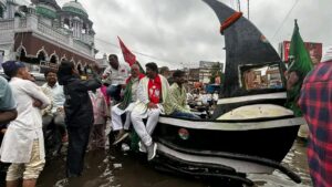 दरभंगा। इंडिया गठबंधन समर्थित विकासशील इंसान पार्टी (वीआईपी) के दरभंगा नगर से प्रत्याशी उमेश सहनी ने शुक्रवार की दोपहर में बारिश के बिच दरभंगा टावर पर शहर की जल जमाव समस्या को लेकर अनोखे तरीके से विरोध प्रदर्शन किया। उमेश सहनी नाव लेकर पहुंचे और टावर के बीचों बीच नाव और जाल फेंककर मछली पकड़ने का प्रदर्शन किया। वीआईपी उम्मीदवार, उमेश सहनी ने कहा पिछले 20 साल से इस क्षेत्र का प्रतिनिधित्व कर रहे विधायक ने सिर्फ विकास के खोखले दावे किए हैं। सच्चाई यह है 10 मिनट की बारिश में पूरा शहर डूब जाता है। दरभंगा अब ऐसा हो गया है यहां मछली पालन शुरू किया जा सकता है। मछुआरा समाज से आने वाले सहनी ने तंज कसते हुए कहा अब तो नगर विधायक जब वोट मांगने निकलें, तो नाव और जाल साथ लेकर जाएं। उन्होंने जनता से अपील की इस बार वोट विकास, शिक्षा,स्वास्थ्य, रोजगार के मुद्दों पर करें ताकि दरभंगा को जलजमाव और अव्यवस्था से मुक्त किया जा सके साथ में वरिष्ठ राजद नेता, ओम प्रकाश खेड़िया, राजद नेता, प्रेमचंद्र यादव उर्फ़ भोलू यादव व वीआईपी नेता, मधुकर आनंद अन्य महागठबंधन के नेता व कार्यकर्तागण उपस्थित थे।