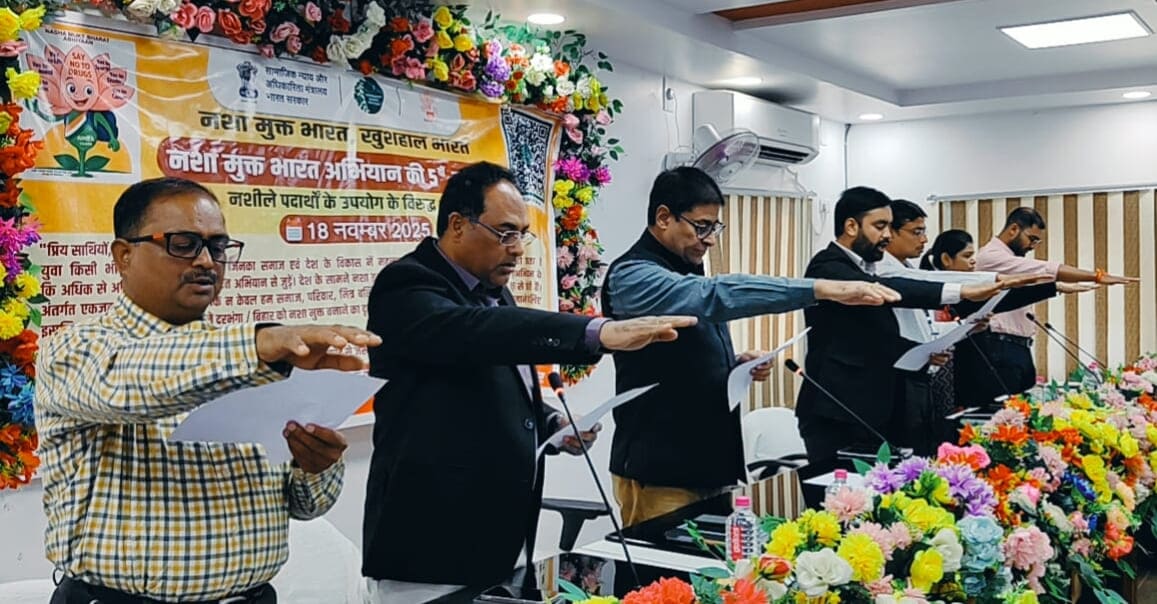 दरभंगा : नशा मुक्त भारत अभियान की 5वीं वर्षगांठ के अवसर पर उप विकास आयुक्त स्वप्निल की अध्यक्षता में समाहरणालय स्थित बाबा साहेब डॉ. भीमराव अंबेडकर सभागार में शपथ ग्रहण एवं जन-जागरूकता कार्यक्रम का आयोजन किया गया।