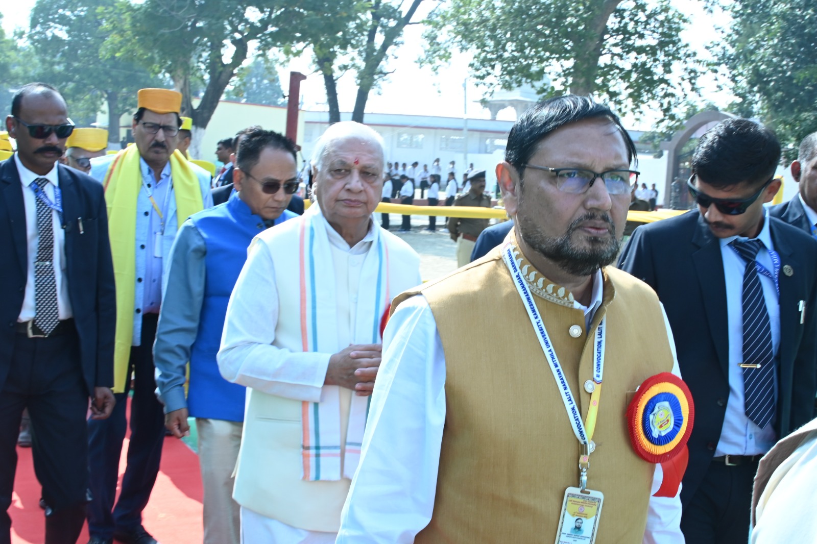 कुलाधिपति ने उपाधि प्राप्त करने वाले छात्र-छात्राओं को बधाई एवं शुभकामना देते हुए कहा कि आज का दिन इन छात्र-छात्राओं, उनके माता-पिता एवं शिक्षकों के लिए महत्वपूर्ण है, क्योंकि डिग्री प्राप्ति के बाद अब छात्र अपने पैरों पर खड़े होंगे। धर्म आस्था की अभिव्यक्ति का एक बेहतरीन माध्यम है जो हमें सही- गलत एवं नैतिक-अनैतिक का फर्क बतलाता है। गीता हमें अच्छे जीवन जीने का मार्गदर्शन करती है। सफल जीवन जीने का रहस्य गीता में वर्णित है, जिसकी आज पश्चिमी देशों के लोग भी अनुकरण कर रहे हैं। उन्होंने कहा कि जब हमारी आत्मा नियंत्रित होती है, तब वह मित्र बन जाती है, परंतु जब वह हमारे नियंत्रण में नहीं हो तो वह हमारा शत्रु बन जाती है। राज्यपाल ने कहा कि सिर्फ पुस्तकीय शिक्षा से ही हम पूर्ण नहीं हो सकते, व्यावहारिक ज्ञान बहुत जरूरी है। हम अपनी महत्वाकांक्षाएं पूर्ण करने के लिए मर्यादा की सीमा को न तोड़ें। लघु बुद्धि वालों में धन, विद्या या कुल आदि नशा पैदा करते हैं, परंतु सात्विक प्रवृत्ति वालों में ये आत्मगौरव का भाव उत्पन्न करते हैं। विनम्रता में हम जितना झुकते हैं, दुनिया उतना ही हमें ऊपर उठाती है।