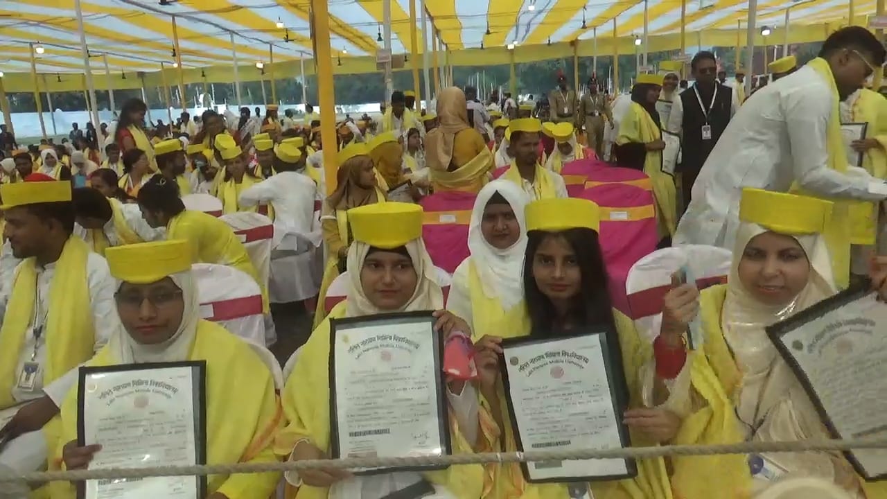 दरभंगा : बिहार के राज्यपाल सह कुलाधिपति की अध्यक्षता में डॉ. नागेन्द्र झा स्टेडियम में ललित नारायण मिथिला विश्वविद्यालय, दरभंगा के आयोजित 11वें दीक्षांत समारोह में 25 टॉपर छात्रों तथा एक ओवर ऑल टॉपर सहित 26 गोल्ड मेडलिस्ट, 80 पीएच डी धारी सहित करीब 1200 छात्र- छात्राओं को डिग्रियां प्रदान की गई। समारोह में दीक्षांत वक्ता के रूप में शिक्षा संस्कृति उत्थान न्यास, नई दिल्ली के राष्ट्रीय सचिव डॉ अतुल कोठारी, सम्मानित अतिथि के रूप में आईआईटी, पटना के निदेशक प्रो टी एन सिंह तथा विशिष्ट अतिथि के रूप में राज्यपाल के प्रधान सचिव रॉबर्ट एल चोंग्थु उपस्थित रहे। सर्वप्रथम विद्वत शोभा यात्रा निकाली गई, जिसमें कुलाधिपति सहित कुलपति, पूर्व कुलपति, कुलसचिव, संकायाध्यक्ष, सीनेट, सिंडिकेट तथा विद्वत परिषद् के सदस्यों ने भाग लिया। राष्ट्रगान, विश्वविद्यालय कुलगीत तथा कन्वोकेशन बैण्ड की प्रस्तुति विश्वविद्यालय संगीत एवं नाट्य विभाग के छात्र-छात्राओं द्वारा प्रस्तुत किया गया। मुख्य कन्वोकेशन का संचालन कुलसचिव डॉ दिव्या रानी हांसदा ने किया, जबकि अन्य भागों का संचालन डॉ प्रियंका राय, डॉ रश्मि कुमारी तथा नेहा कुमारी ने संयुक्त रूप से किया। इस अवसर पर पूर्व कुलपति प्रोफेसर राजमणि प्रसाद सिन्हा को भौतिकी के क्षेत्र में विशिष्ट उपलब्धि तथा प्रोफेसर समरेन्द्र प्रताप सिंह को चिकित्सा क्षेत्र में विशिष्ट उपलब्धि के लिए डॉक्टर ऑफ साइंस की मानद उपाधि कुलाधिपति ने प्रदान किया।