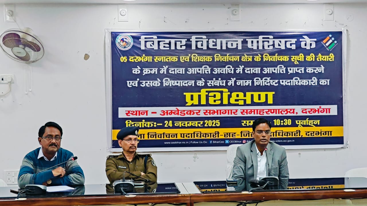 दरभंगा : समाहरणालय अवस्थित बाबा साहेब डॉ.भीमराव अंबेडकर सभागार में जिला निर्वाचन पदाधिकारी सह जिला पदाधिकारी दरभंगा कौशल कुमार की अध्यक्षता में 05–दरभंगा स्नातक एवं शिक्षक निर्वाचन क्षेत्र के निर्वाचक सूची की तैयारी के क्रम में आयोजित नामित पदाधिकारियों के प्रशिक्षण कार्यक्रम का आयोजन किया गया।