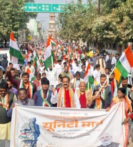 दरभंगा। देश को एक सूत्र में पिरोकर देश के पहले उप प्रधानमंत्री तथा गृह मंत्री श्री सरदार बल्लभ भाई पटेल ने अखंड भारत का निर्माण किया। उनकी जयंती के 150 साल पूरा होने के अवसर पर देश भर में एक महीने से सभी जिलों में आयोजित होने वाले कार्यक्रम के आलोक में भारत सरकार के युवा एवं खेलकूद विभाग से संबद्ध माई भारत केंद्र के तत्वावधान में दरभंगा में एकता यात्रा निकाली गई जिसमें हजारों लोगो की उत्साहपूर्ण भागीदारी इस बात को साबित करता है कि सरदार पटेल आज भी देश के बहुसंख्यक लोगों के दिलों में बसते हैं। स्थानीय सांसद तथा इस कार्यक्रम के मुख्य अतिथि डा गोपाल जी ठाकुर ने एकता यात्रा के समापन पर आयोजित कार्यक्रम को संबोधित करते हुए उपरोक्त बातें कही। सांसद ने तिरंगा झंडा दिखाकर दरभंगा के कर्पूरी चौक से माई भारत केंद्र के स्वयंसेवकों विभिन्न सामाजिक संगठनों तथा छात्र छात्राओं के द्वारा निकाले गए एकता यात्रा की शुरुआत की तथा लहेरियासराय टॉवर होते हुए प्रेक्षागृह के प्रांगण में इस यात्रा का समापन हुआ। उन्होंने भाजपा जिलाध्यक्ष आदित्य नारायण मन्ना के साथ लहेरियासराय टॉवर पर स्थापित राष्ट्रपिता महात्मा गांधी की प्रतिमा पर माल्यार्पण कर अपनी श्रद्धा सुमन अर्पित किए। एकता यात्रा के समापन के बाद लहेरियासराय प्रेक्षागृह में आयोजित कार्यक्रम में सांसद डा ठाकुर ने सरदार पटेल के व्यक्तित्व को विशाल वटवृक्ष बताते हुए कहा कि करोड़ों देशवासियों के उनके प्रति आदर और सम्मान का परिणाम है देश के यशस्वी प्रधानमंत्री नरेंद्र मोदी ने नर्मदा नदी के तट पर दुनिया की सबसे ऊंची,597 मीटर प्रतिमा स्टेच्यू ऑफ यूनिटी का निर्माण किया जो हर देशवासियों के लिए गौरव का विषय है। उन्होंने इस स्टेच्यू ऑफ यूनिटी को भारत की एकता और अखंडता का प्रतीक बताते हुए कहा कि एकता यात्रा सरदार पटेल की सच्ची श्रद्धांजलि है। कार्यक्रम में केवटी विधायक डॉ मुरारी मोहन झा ने एकता यात्रा के उद्देश्यों पर प्रकाश डालते हुए कहा कि छात्र छात्राओं के साथ युवाओं को इस तरह के कार्यक्रम में बढ़ चढ़ कर भागीदारी देनी चाहिए। एकता यात्रा में जिला खेल पदाधिकारी कुमार परिमल भाजपा जिलाध्यक्ष आदित्य नारायण मन्ना जिला महामंत्री सुजीत मल्लिक प्रेम कुमार मिश्र रिंकू ठाकुर भूपेंद्र किशोर कुमार गौरव,राजीव कुशवाहा, संगीता शाह,मीरा देवी,चंदू पाठक, रंजीत कुमार,प्रशांत कुमार,संतू कुमार, सुंदरकांत कामत,कुणाल कुमार,गौतम कुमार,आशुतोष झा, गुलशन चौधरी सहित सैंकड़ो लोग मौजूद थे।