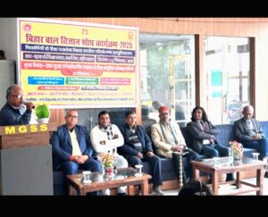 दरभंगा। राज्य शिक्षा शोध एवं प्रशिक्षण परिषद, बिहार ,पटना तथा बिहार विज्ञान एवं प्रावैधिकी परिषद पटना की सहभागिता से साइंस फॉर सोसाइटी बिहार की दरभंगा जिला इकाई द्वारा महात्मा गांँधी शिक्षण संस्थान बंगाली टोला, लहेरियासराय में मुख्य विषय खाद्य सुरक्षा एवं पर्यावरणीय स्वास्थ्य के लिए प्राकृतिक संसाधन प्रबंधन पर सातवीं से बारहवीं कक्षाओं के छात्र-छात्राओं के लिए जिला स्तरीय परियोजना प्रस्तुतीकरण कार्यक्रम का आयोजन किया गया। जिसमें निर्धारित मुख्य विषय एवं उप विषयों के अंतर्गत 102 बाल विज्ञानियों ने अपने-अपने शोध पत्र प्रस्तुत किए। निर्णायक मंडल द्वारा उच्च माध्यमिक स्तर से प्रिंस कुमार,वर्षा कुमारी एवं छोटी कुमारी, माध्यमिक स्तर से अदनान इमरान, शारदा सुमन,आदर्श कुमार,चंदन कुमार, राम कुमार साहनी एवं नंदिनी कुमारी तथा मध्य स्तर से सानिया इकबाल,चंदन कुमार एवं अमन कुमार का चयन जिला अवॉर्डी के रूप में किया गया। कार्यक्रम का प्रारंभ समारोहपूर्वक हुआ, जिसका उद्घाटन प्रख्यात पर्यावरण विद् प्रो. डॉ विद्या नाथ झा एवं राष्ट्रीय मखाना अनुसंधान केंद्र दरभंगा के वरिष्ठ वैज्ञानिक डॉ मनोज कुमार सहित निर्णायक मंडल के सदस्यों प्रोफेसर डॉ कालिदास झा, डॉ उदयानंद यादव एवं डॉ दीपक कुमार, जिला समन्वयक राम बुझावन यादव रमाकर एवं महात्मा गांँधी शिक्षण संस्थान के निदेशक हीरा कुमार झा ने समवेत रूप से दीप प्रज्वलित कर किया । आयोजक विद्यालय के संगीत शिक्षक दीपक कुमार झा के निर्देशन में राजलक्ष्मी , साक्षी कुमारी एवं लक्ष्मी कुमारी द्वारा मनमोहक स्वागत गान की प्रस्तुति के पश्चात निदेशक हीरा कुमार झा द्वारा आगत अतिथियों का मिथिला की परंपरा के अनुसार पाग , अंग वस्त्र एवं पौधा प्रदान कर सम्मान करते हुए स्वागत संबोधन किया गया ।