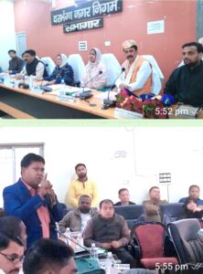 पार्षदों ने सबमर्सिबल के विद्युत विपत्र की समस्या से भी अवगत कराया, कई पार्षदों ने सबमर्सिबल के विद्युत विपत्र की समस्या से सदन को अवगत कराते हुए इसे लेकर नगर विधायक ने भी हस्तक्षेप करते हुए बिजली विभाग के पदाधिकारी को कहा शहर में नल जल योजना के तहत पानी सप्लाई की बिजली बिल और सबमर्सिबल से सप्लाई पानी के बिजली बिल को नगर निगम को अलग-अलग नगर भेजे। पानी आमजन के लिए महत्वपूर्ण विषय है। इसे बंद नहीं होने दे। विभाग अग्रिम बिजली के बिल की मांग नगर निगम से करें। इस पर नगर आयुक्त ने भी हामी भरी। बैठक में अतिक्रमण हटाने, सर्वोच्च न्यायालय के आवारा कुत्ता को रखने के आदेश, रात्रि सफाई, जीविका विषय आदि को लेकर चर्चा की गई। बैठक में विधायक संजय सरावगी, डिप्टी मेयर नाजिया हसन, डीएमसीएच अधीक्षक डा. शीला कुमारी, नगर आयुक्त राकेश कुमार गुप्ता, उपनगर आयुक्त मो. फिरोज, पार्षद शत्रुघ्न प्रसाद यादव नारद यादव, नफ़ीसुल हक रिंकू, फिरोज आलम, विकास कुमार, फिरदौस जहां, राजू पासवान के अलावा, टाउन प्लानर शैलजा कांत मिश्र, एई चेतन आनंद, ज्योति रानी, जेई जितेंद्र कुमार, राजस्व प्रभारी प्रजापति मिश्र, कार्यालय अधीक्षक मुख्तार अहमद खान, बाजार प्रभारी राजाराम, संतोष सिंह, स्वास्थ्य प्रभारी श्याम दास सहित अन्य उपस्थित थे।