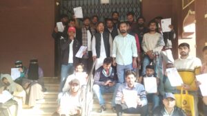 कुलपति से वार्ता में आसिफ कमाल,मुजम्मिल रजा आज़मी, कुमार सौरव, मो. जमशेद, सद्दाक हुसैन,शफी साजिद अली, फरदीन अहमद खान, दुर्गानंद कुशवाहा, इकबाल सहाब मौजूद रहे।