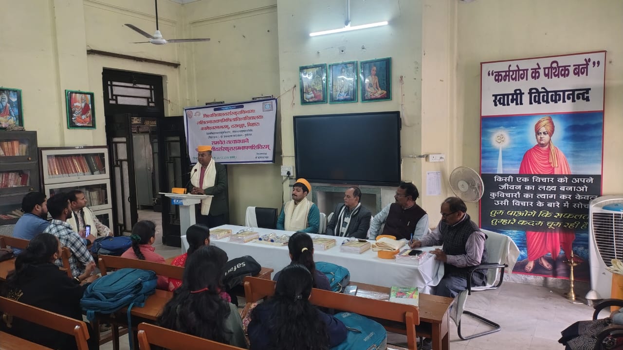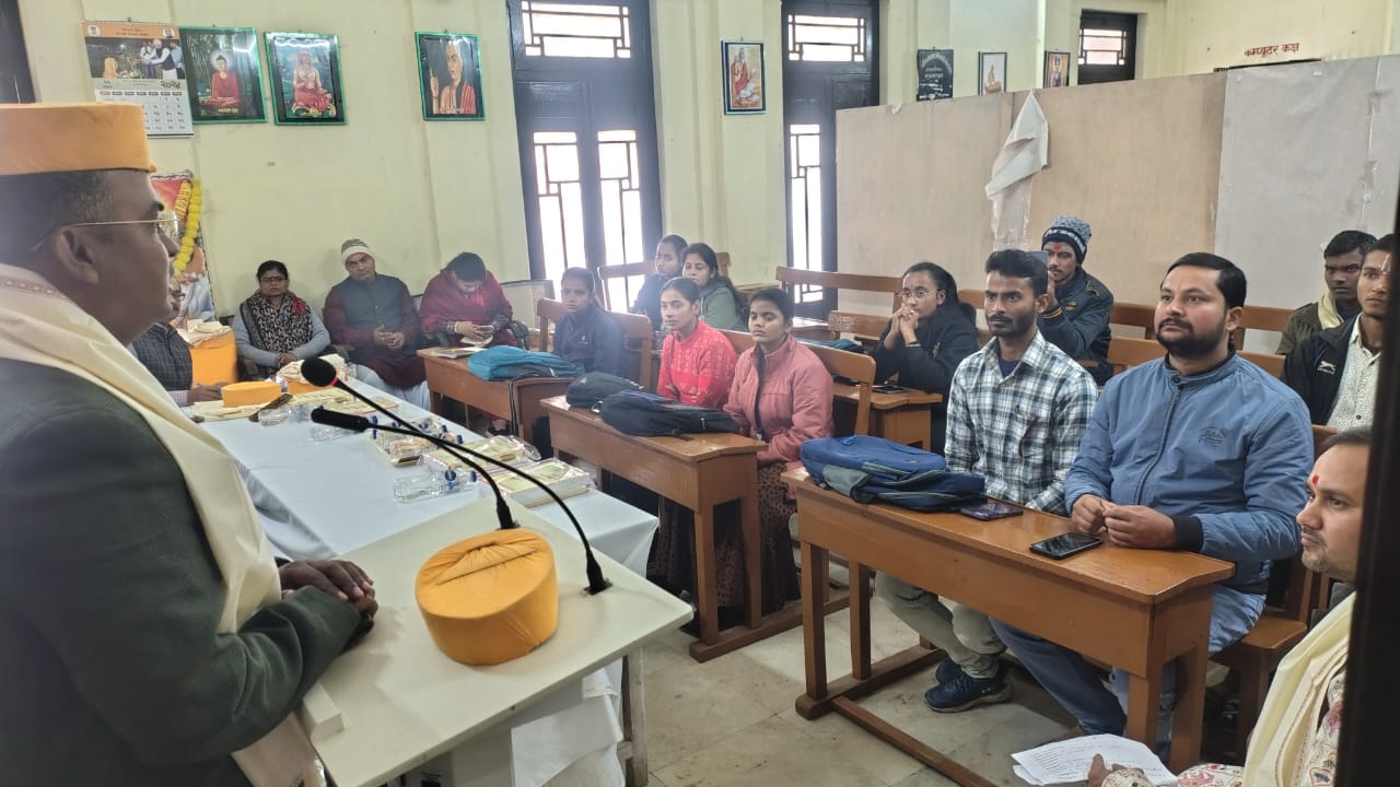 कार्यक्रम में संस्कृत अध्ययन केन्द्र के सर्टिफिकेट एवं डिप्लोमा कोर्सों में नवनामांकित छात्रों का आरंभ हुआ वर्ग एवं दी गई पांच पुस्तकें