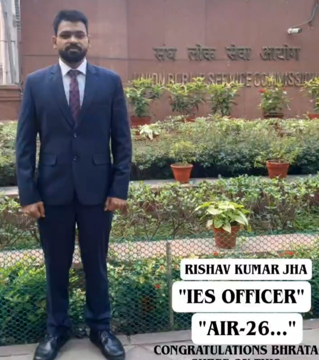 मधुबनी (निशांत झा)। रहिका प्रखंड अंतर्गत सौराठ गांव के प्रतिभाशाली छात्र ऋषव कुमार झा ने संघ लोक सेवा आयोग द्वारा आयोजित इंजीनियरिंग सर्विसेज एग्ज़ामिनेशन (UPSC-ESE) में इलेक्ट्रिकल इंजीनियरिंग विषय में ऑल इंडिया रैंक 26 प्राप्त कर प्रखंड, जिला एवं राज्य का नाम रोशन किया है।