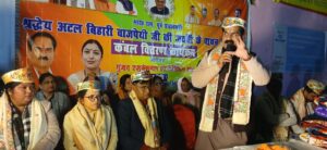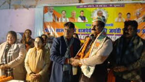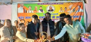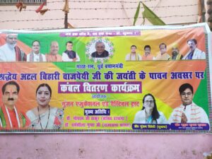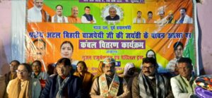 दरभंगा। भारत रत्न सह पूर्व प्रधानमंत्री अटल बिहारी वाजपेयी के 101 वीं जयंती पर दिगघी पश्चिम, काली मंदिर परिसर में गुंजन एजुकेशन एंड चैरिटेबल ट्रस्ट के बैनर तले कंबल वितरण कार्यक्रम का आयोजन किया गया। इस सेवा कार्यक्रम का आयोजन भाजपा चिकित्सा प्रकोष्ठ के प्रदेश सह संयोजक डॉ. मृदुल कुमार शुक्ला एवं उनकी धर्मपत्नी डॉ. गुंजन त्रिवेदी शुक्ला के नेतृत्व में किया गया। कंबल वितरण कार्यक्रम भाजपा मंडल अध्यक्ष, पिंटू भंडारी की अध्यक्षता में शुरु हुई। कार्यक्रम में मुख्य अतिथि के रूप में दरभंगा के लोकप सांसद डॉ. गोपाल जी ठाकुर उपस्थित रहे। उन्होंने कहा श्रद्धेय अटल बिहारी वाजपेयी जी का संपूर्ण जीवन राष्ट्रसेवा, सुशासन और सामाजिक समरसता को समर्पित रहा। उनके विचारों और आदर्शों पर चलकर समाज के अंतिम पंक्ति में खड़े व्यक्ति तक सेवा पहुँचाना ही उन्हें सच्ची श्रद्धांजलि है। इस अवसर पर जरूरतमंद लोगों के बीच कंबलों का वितरण किया गया। साथ ही सेवा भाव को आगे बढ़ाते हुए भोजन स्वरूप खीर का भी वितरण किया गया। स्थानीय नागरिकों ने इस जनसेवा कार्य की सराहना करते हुए आयोजक डॉ. मृदुल कुमार शुक्ला के प्रति आभार व्यक्त किया। कार्यक्रम के आयोजक डॉ. मृदुल कुमार शुक्ला ने कहा जब तक मेरी सांस चलेगी। तब तक जरूरतमंदों के बीच सेवा कार्य निरंतर जारी रहेगा। मैं पहले भी समाज सेवा करता रहा हूँ और आगे भी पूरी निष्ठा के साथ करता रहूंगा। कार्यक्रम की शुरुआत अटल बिहारी वाजपेयी के चित्र पर पुष्पांजलि अर्पित कर की गई। इस अवसर पर मंडल अध्यक्ष,पिंटू भंडारी,महिला मोर्चा जिलाध्यक्ष सपना भारती, अमरेश चौधरी,डॉ. राजेश कुमार, रंजन झा,अविनाश कश्यप,पृथ्वी चौधरी सहित भाजपा के देवतुल्य कार्यकर्ता एवं सहित कई गणमान्य उपस्थित रहे।
