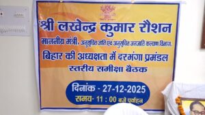 दरभंगा। बिहार सरकार के अनुसूचित जाति एवं जनजाति कल्याण विभाग, बिहार मंत्री, लखेंद्र कुमार की अध्यक्षता में दरभंगा प्रमण्डलीय कार्यालय सभागार में बैठक हुई। दरभंगा प्रमंडल अंतर्गत अपर समाहर्ता दरभंगा,पुलिस अधीक्षक नगर, दरभंगा ,प्रभारी उपनिदेशक कल्याण, दरभंगा ,जिला कल्याण पदाधिकारी, दरभंगा ,समस्तीपुर, मधुबनी ,तीनों जिलों में पदस्थापित सभी अनुमंडल कल्याण पदाधिकारी और सभी प्रखंड कल्याण पदाधिकारी के साथ विभागीय समीक्षात्मक बैठक उपस्थित थे। अनुसूचित जाति अत्याचार अधिनियम 1989 का क्रियान्वयन एवं अनुश्रवण, आवासीय विद्यालय संचालन,छात्रावास संचालन एवं सामुदायिक भवन -सह-वर्कशेड निर्माण ,उसके जिर्णोद्धार एवं मरम्मती ,डॉ भीमराव अंबेडकर आवासीय विद्यालय, डॉक्टर अंबेडकर कल्याण छात्रावास निर्माण एवं जिर्णोद्धार ,विकास रजिस्टर्ड 2.0 का अद्यतन प्रविष्टि शुद्धिकरण ,भूमिहीन को वासगीत पर्चा /बंदोबस्ती दिलाना आदि में लंबित मामलों का गहन समीक्षा करते हुए कई आवश्यक निर्देश दिया गया। योजनाओं की समीक्षा के बाद मंत्री के द्वारा डॉ अंबेडकर आवासीय उच्च विद्यालय कोल्हंडा पटोरी ,बहादुरपुर एवं डॉ अंबेडकर कल्याण छात्रावास मुगलपुरा छात्रावास संख्या -1(200 आसन)एवं छात्रावास संख्या -2(100 आसन) एवं छात्रावास संख्या -4 (100आसन)का भ्रमण /निरीक्षण किया। आवासीय विद्यालय एवं छात्रावास में छात्र/ छात्राओं को मिल रही सभी सुविधाओं की जानकारी ली गई तथा सुविधाओं को और बेहतर करने के लिए आवश्यक निर्देश दिए गए, उपरोक्त भ्रमण के पश्चात माननीय मंत्री वापस पटना के लिए प्रस्थान कर गए। यह जानकारी उपनिदेशक दरभंगा प्रमंडल दरभंगा द्वारा दी गई।