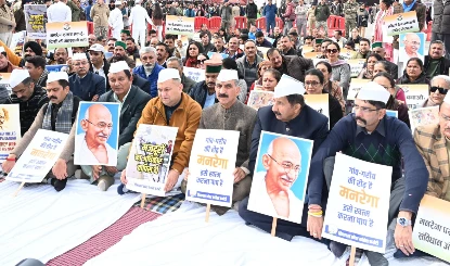 डेस्क :हिमाचल प्रदेश के मुख्यमंत्री सुखविंदर सिंह सुक्खु ने शिमला में महात्मा गांधी प्रतिमा के पास केंद्र सरकार द्वारा महात्मा गांधी नरेगा (मनरेगा) योजना को रद्द करने के फैसले के विरोध में प्रदर्शन किया। उन्होंने इस कदम को घोर ग्रामीण विरोधी बताते हुए लाखों ग्रामीण परिवारों की आजीविका सुरक्षा के लिए हानिकारक बताया और कहा कि इससे पंचायतों को दरकिनार कर दिया गया है तथा राज्य पर अतिरिक्त वित्तीय बोझ पड़ेगा। हिमाचल प्रदेश के मुख्यमंत्री सुखविंदर सिंह सुक्खु ने सोमवार को अपने मंत्रिमंडल के सदस्यों के साथ शिमला के रिज स्थित महात्मा गांधी प्रतिमा के पास केंद्र सरकार के एमजीएनआरईजीए योजना को बंद करने के फैसले के विरोध में प्रदर्शन किया। एक आधिकारिक विज्ञप्ति के अनुसार, उपस्थित लोगों को संबोधित करते हुए मुख्यमंत्री ने इस कदम को घोर ग्रामीण विरोधी और लाखों ग्रामीण परिवारों की आजीविका सुरक्षा के लिए हानिकारक बताया।