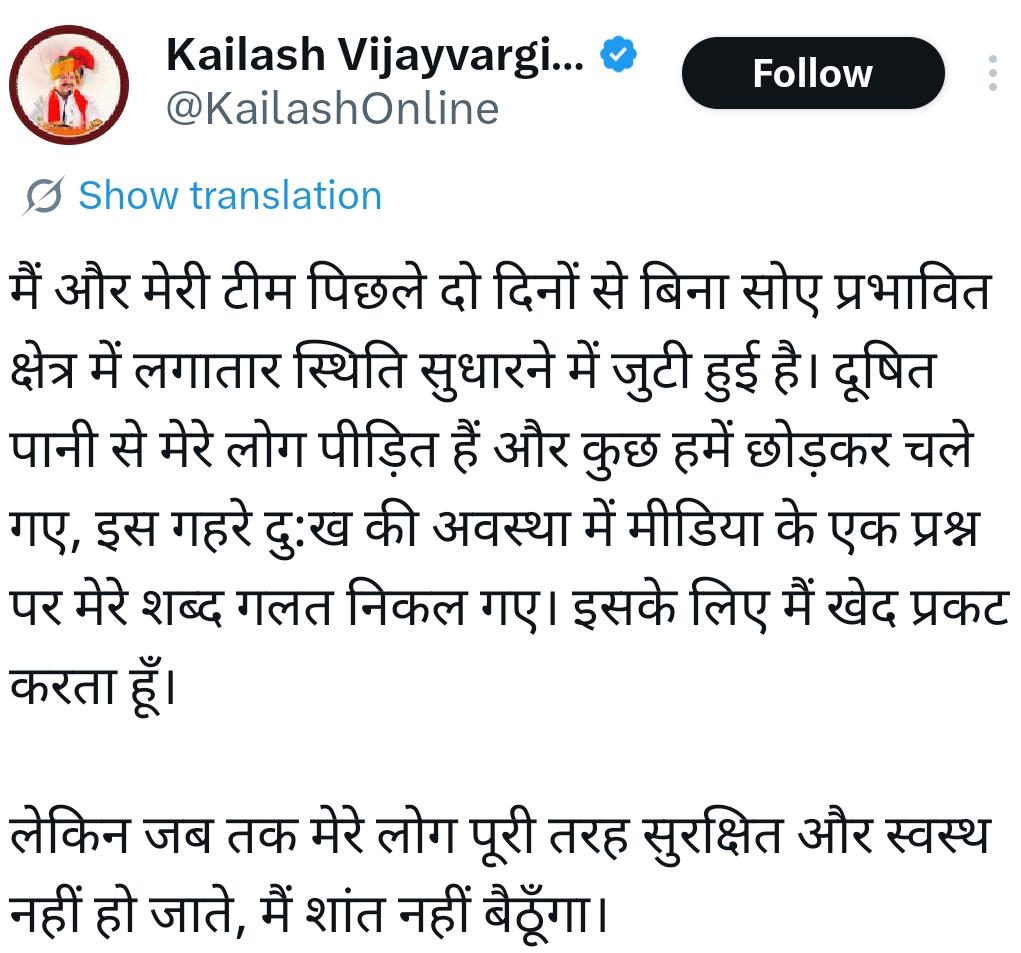 राष्ट्रीय इंदौर में दूषित पेयजल से 10 मौतों के सवाल को ‘फोकट’ और ‘घंटा’ बतानेवाले MP के मंत्री कैलाश विजयवर्गीय ने मांगी माफी Posted on January 1, 2026 Author admin Comment(0)