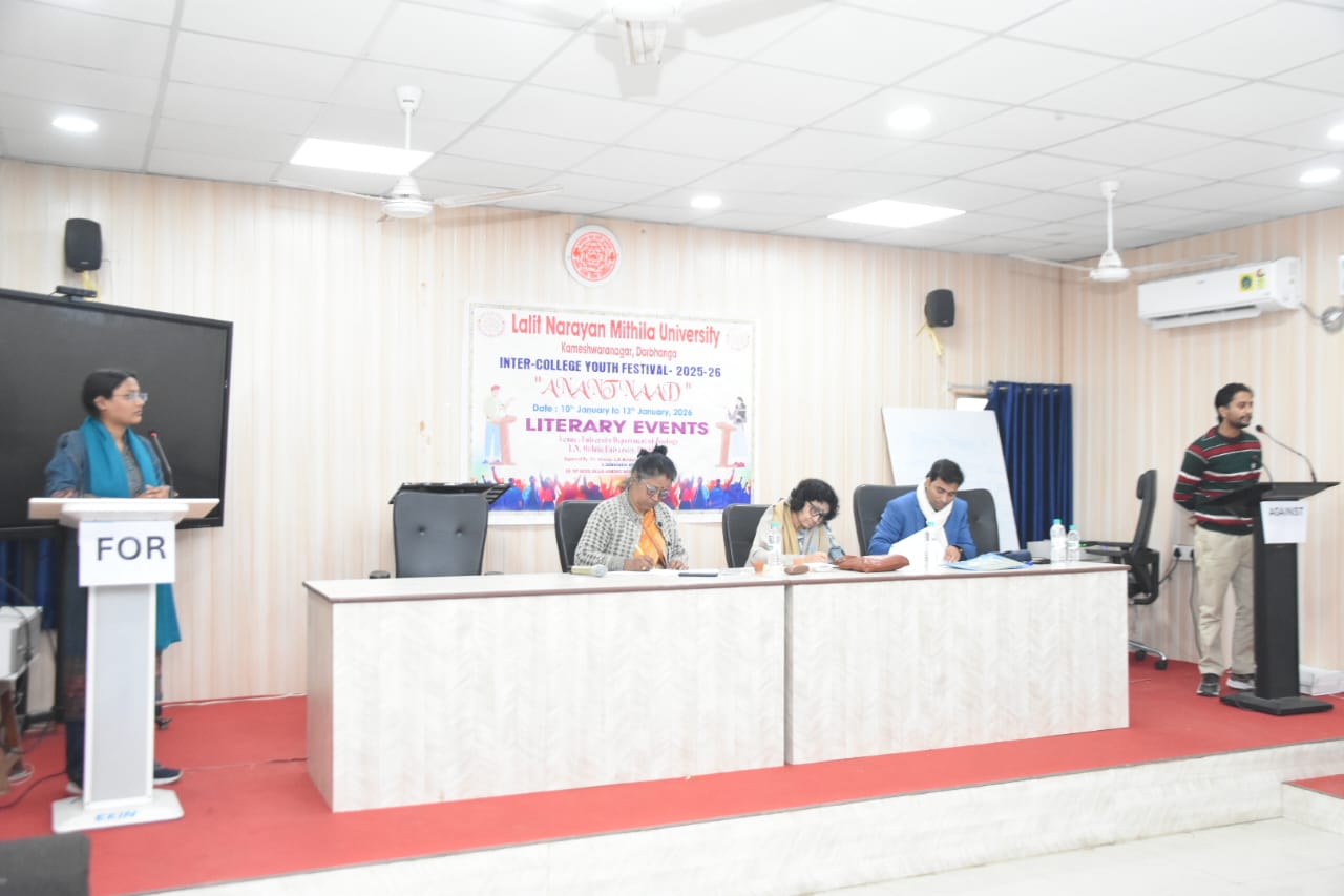 दरभंगा : ललित नारायण मिथिला विश्वविद्यालय, दरभंगा के पीजी एथेलेटिक्स एवं डॉ एपीजे अब्दुल कलाम डब्ल्यूआईटी के संयुक्त तत्वावधान में गत 10 से 13 जनवरी, 2026 के बीच आयोजित हो रहे इंटर कॉलेज यूथ फेस्टिवल 2025-26 ‘अनंतनाद’ का समापन समारोह 13 जनवरी को कुलपति प्रोफेसर संजय कुमार चौधरी की अध्यक्षता में जुबली हॉल में पूर्वाह्ण 11 बजे से आयोजित किया जाएगा, जिसमें मुख्य अतिथि विश्वविद्यालय के पूर्व कुलपति डॉ. समरेन्द्र प्रताप सिंह होंगे।