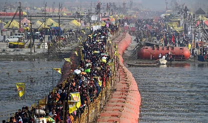 डेस्क :प्रयागराज में जारी माघ मेले में रविवार को मौनी अमावस्या पर सुबह आठ बजे तक 1.3 करोड़ श्रद्धालुओं ने गंगा और संगम में डुबकी लगाई। मेला प्रशासन के एक अधिकारी ने यह जानकारी देते हुए बताया कि कल रात 12 बजे से ही स्नान करने के लिए लोगों का गंगा और संगम क्षेत्र में आना जारी है। इससे पूर्व, मकर संक्रांति के अवसर पर 1.03 करोड़ जबकि एकादशी पर लगभग 85 लाख लोगों ने गंगा और संगम में स्नान किया था। मंडलायुक्त सौम्या अग्रवाल ने बताया कि श्रद्धालुओं को सही रास्ता दिखाने के लिए मेला प्रशासन ने खंभों पर ‘रिफ्लेक्टिव टेप’ लगाए हैं और नागरिक सुरक्षा स्वयं सेवक भी श्रद्धालुओं का मार्गदर्शन कर रहे हैं। उन्होंने बतया कि माघ मेला 800 हेक्टेयर क्षेत्र में सात सेक्टरों में लगाया गया है।