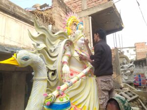 दरभंगा। इस बार शुक्रवार 23 जनवरी को सरस्वती पूजा मनाई जाएगी। जिसे लेकर तैयारी जोर-जोर से चल रही है और मूर्तियों को अंतिम रूप दिया जा रहा है। विद्या की अधिष्ठात्री देवी सरस्वती की पूजा-अर्चना को लेकर युवाओं में गजब का उत्साह नजर आ रहा है। शहर में विभिन्न जगहों पर मूर्तिया मूर्तिकारों के द्वारा बनाई जाती है। जिसमें हसन चौक, मौलागंज, चट्टी चौक के निकट, रामबाग किला के निकट सहित विभिन्न जगहों पर हर साल विभिन्न पूजा के अवसरों पर विशेष कर सरस्वती पूजा पर मूर्तियां बनाई जाती है। मूर्तिकारों ने बताया पिछले वर्ष से इस वर्ष मूर्तियों की मांग ज्यादा है, मूर्तियों को अंतिम रूप दिया जा रहा है ताकि समय पर मूर्तियां सभी को मिल जाए। मौलागंज के मूर्तिकारों ने बताया इस बार पहले से ज्यादा डिमांड मूर्तियों की हो रही है। ऑर्डर दे चुके हैं पहले उसके लिए तैयारी चल रही है और मूर्तियों को अंतिम रूप दिया जा रहा है। 1 हजार से लेकर 3 हजार,5 हजार,10 हजार, 15 हजार, 25 हजार, 30 हजार, 35 हजार से अधिक तक की मूर्तियां बनाई गई है। कुछ मूर्तियां बनकर तैयार है तो कुछ को अंतिम रूप दिया जा रहा है। जैसे-जैसे समय नजदीक आती जा रही है, युवाओं में उमंग उत्साह भी बढ़ता जा रहा है। ज्योतिषाचार्य पंडित विश्वनाथ शास्त्री बताते हैं की देवी पूजन प्रातः कालीन उत्तम होगा। सुबह 9.20 बजे से लेकर दोपहर 12 बजे तक अधपहरा है, इसलिए या तो 9.20 बजे से पहले या फिर दोपहर 12 के बाद पूजन करना चाहिए। सार्वजनिक पूजन स्थलों पर पंडाल का निर्माण आरंभ हो चुकी है और अंतिम रूप दिया जा रहा है मूर्तिकार भी प्रतिमा को अंतिम रूप देने में जुटे और प्रतिमा को अंतिम रूप देने में दिन-रात लगा दिया हैं। बता दें 23 जनवरी को ऋतुराज बसंत के स्वागत संग श्रद्धालु भगवती सरस्वती की 24 जनवरी की रात 10.49 बजे तक षष्ठी प्रतिमा विसर्जन के लिए पूरे दिन मुहूर्त बन