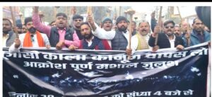 दरभंगा। भारत सरकार के द्वारा यूजीसी नियम लागू करने के खिलाफ दरभंगा के सवर्ण जाति के लोग काला कानून वापस लेने के लिए मशाल जुलूस निकाल कर विरोध प्रदर्शन किया। इन लोगों का कहना था जिस तरह भाजपा की सरकार को गोद में बैठ कर केंद्र में भेजे हैं उसी तरह सरकार से बाहर भी कर सकते हैं। उनके बच्चों के साथ खिलवाड़ करने का यह बहुत ही गंदा नियम लाया गया है जिसे वापस लेना होगा यदि वापस नहीं लेते हैं तो सड़कों पर उतरकर विरोध लगातार करते रहेंगे। ब्राह्मण फेडरेशन के जिला अध्यक्ष रामचंद्र चौधरी उर्फ पप्पू चौधरी ने कहा कि याद होगा मंडल आयोग बीपी सिंह के द्वारा लाया गया था उन्हें ऊंची जाति के लोग पूरी तरह उखाड़ फेंके थे। यदि काला कानून वापस नहीं लेते हैं तो ठीक उसी तरह नरेंद्र मोदी की सरकार को भी उखाड़ फेकेंगे। जब तक यह कानून वापस नहीं होगा तब तक हम लोग संघर्ष करते रहेंगे।