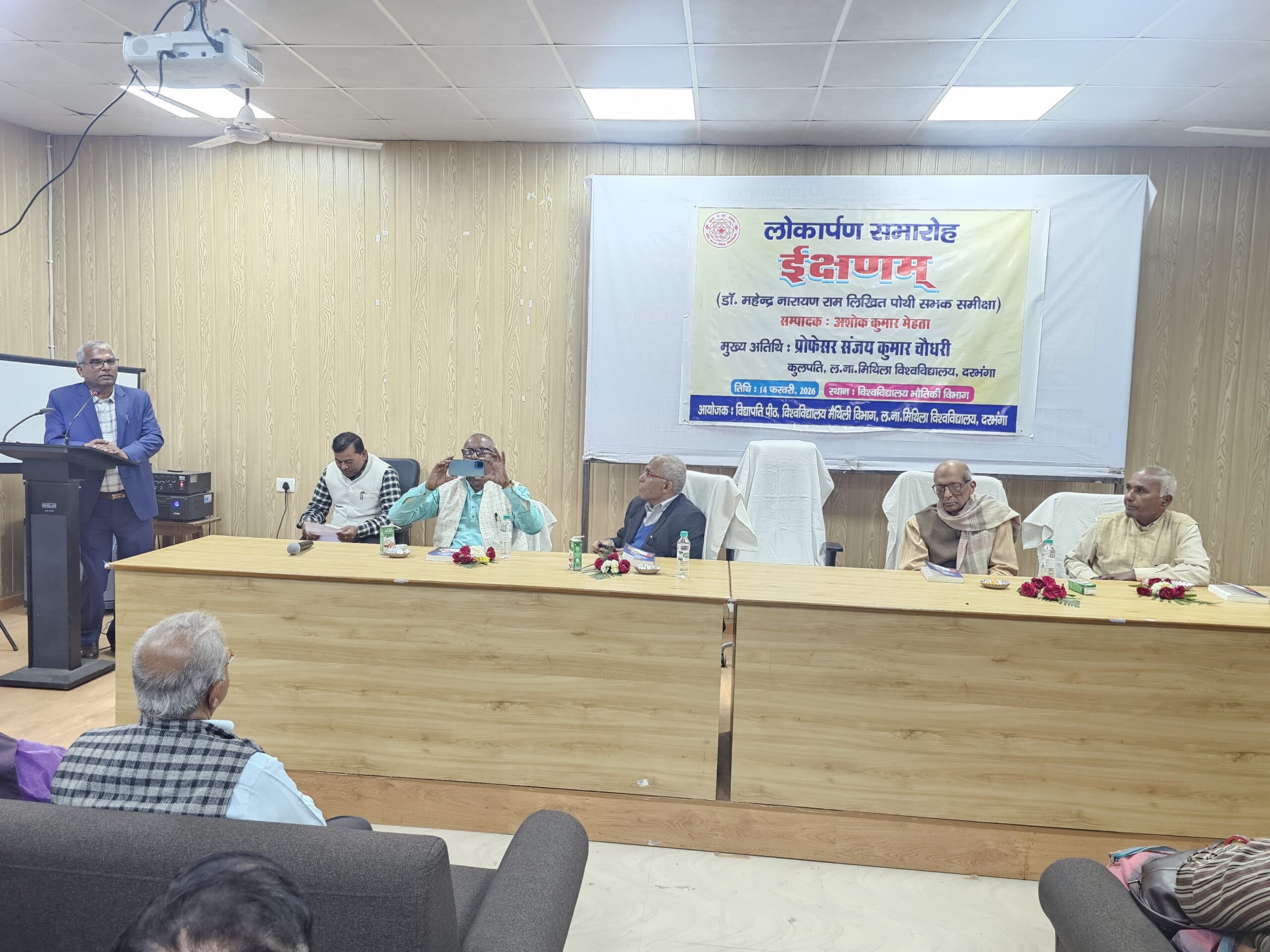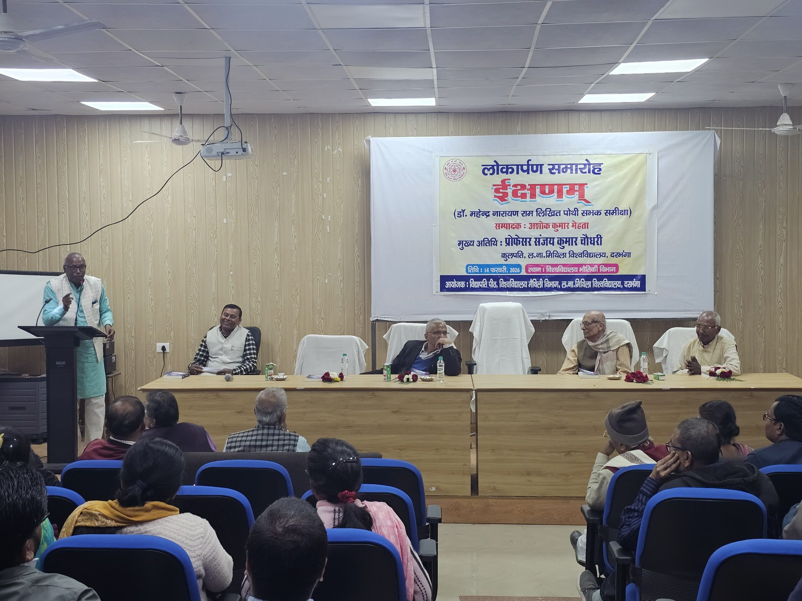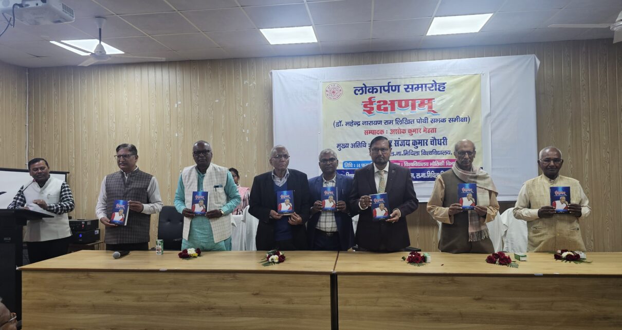 दरभंगा : अच्छी पुस्तकों के प्रकाशन का समाज पर काफी गहरा प्रभाव पड़ता है। प्रो अशोक कुमार मेहता प्रशासनिक पदों पर रहते हुए भी निरंतर अपने लेखन कार्य से दूसरों के लिए प्रेरक बने हुए हैं। उक्त बातें ललित नारायण मिथिला विश्वविद्यालय, दरभंगा के कुलपति प्रोफेसर संजय कुमार चौधरी ने डॉ महेन्द्र नारायण राम लिखित ग्रन्थों पर आधारित प्रो मेहता द्वारा सम्पादित समीक्षा ग्रन्थ ‘इक्षणम्’ का विश्वविद्यालय भौतिकी विभाग में मुख्य अतिथि के रूप में लोकार्पण करते हुए कही। कुलपति ने प्रो मेहता को पुस्तक सम्पादन हेतु बधाई एवं शुभकामना देते हुए कहा कि सम्पादक/लेखक इसी तरह अच्छी-अच्छी पुस्तकों का लेखन करें, ताकि समाज पर सकारात्मक प्रभाव डाला जा सके।