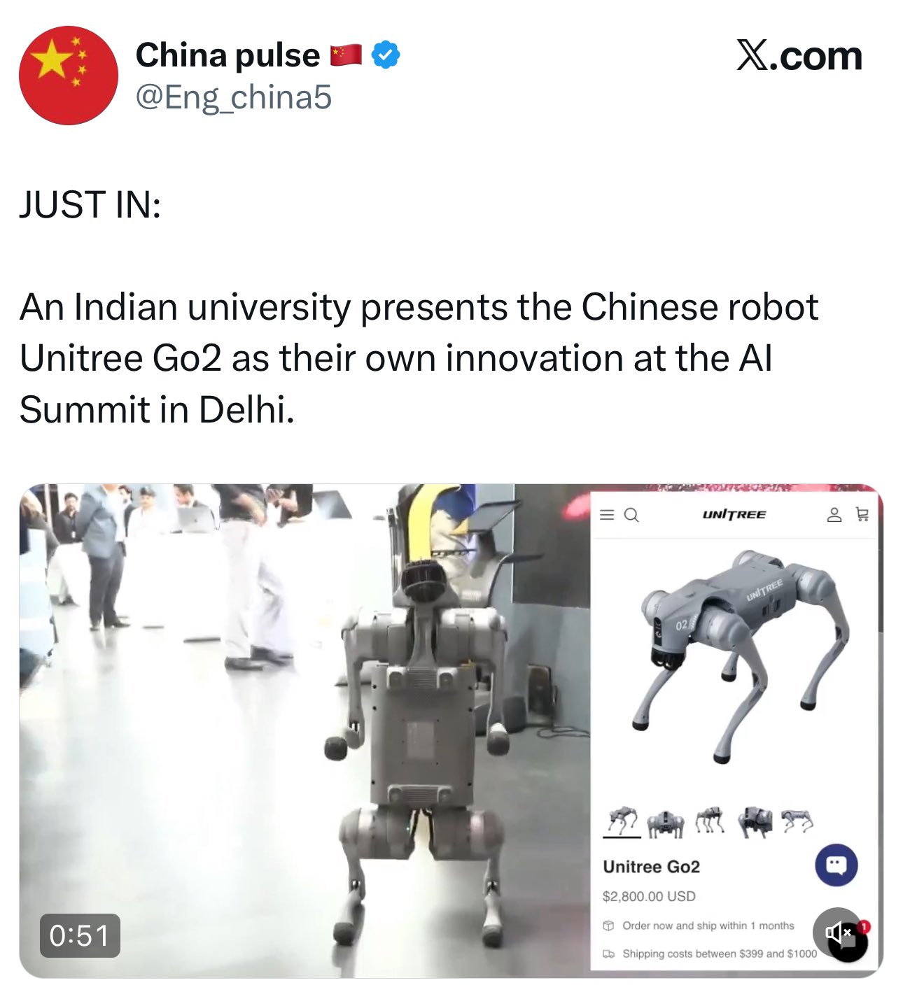 वायरल वीडियो दिल्ली : AI समिट में गलगोटिया यूनिवर्सिटी ने चीन के रोबोटिक कुत्ते को बताया अपना ! पिटी भद्द ! Posted on February 18, 2026February 18, 2026 Author admin Comment(0) https://newswatch.co.in/wp-content/uploads/2026/02/YXT5U5PHaA969NCM.mp4