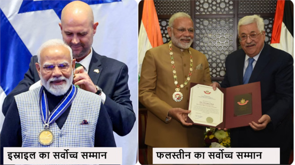 इससे पहले 2018 में प्रधानमंत्री मोदी को ग्रैंड कॉलर ऑफ द स्टेट ऑफ फलस्तीन से सम्मानित किया गया, जो विदेशी नेताओं के लिए सर्वोच्च फलस्तीनी सम्मान है। पीएम मोदी ने इस्राइल में हमास की ओर से सात अक्तूबर को किए गए नरसंहार की कड़ी निंदा की। पीएम मोदी ने इस बात पर जोर दिया कि उनका देश इस्राइल के प्रति सहानुभूति रखता है। उन्होंने कहा कि हम आपकी पीड़ा को समझते हैं। भारत इस समय और भविष्य में भी पूरी दृढ़ता के साथ इस्राइल के साथ खड़ा है।