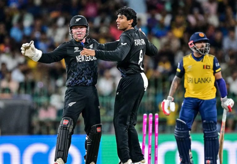 इन दोनों की बदौलत न्यूजीलैंड की टीम ने अंतिम चार ओवरों में 70 रन जुटाए. श्रीलंकाई गेंदबाजों ने अच्छी गेंदबाजी की लेकिन अंतिम ओवरों में गलत लाइन एवं लेंथ के कारण लड़खड़ा गए. श्रीलंका के टॉस जीतकर गेंदबाजी करने के फैसले के बाद ऑफ स्पिनर तीक्षणा और तेज गेंदबाज चामीरा ने मिलकर छह विकेट लेकर न्यूजीलैंड पर लगाम कसी. ग्रुप दो से इंग्लैंड पहले ही अगले दौर में पहुंच चुका है. न्यूजीलैंड ने नौ ओवर में दो विकेट पर 73 रन बना लिए थे. फिन एलन ने 13 गेंद में तीन चौके और एक छक्के से 23 रन बनाए जबकि रचिन रविंद्र ने 22 गेंदों पर 32 रन (तीन चौके, एक छक्का) बनाए।