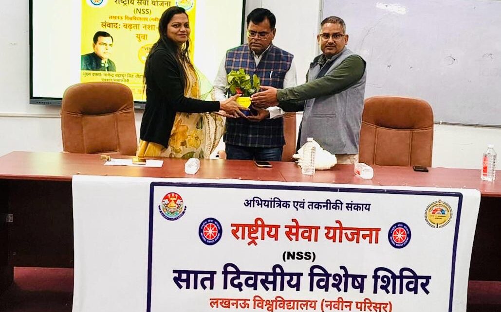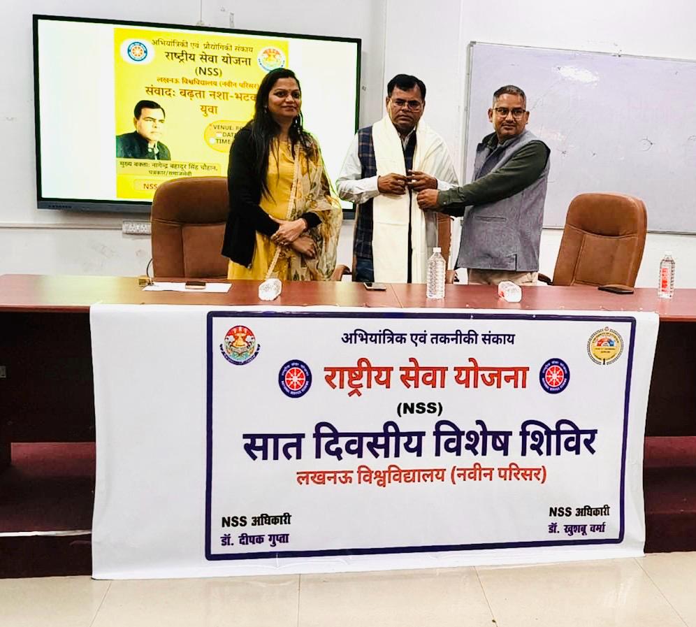 लखनऊ। राष्ट्रीय सेवा योजना (NSS) के सात दिवसीय विशेष शिविर के तृतीय दिवस पर “संवाद:बढ़ता नशा–भटकता युवा” विषयक गोष्ठी का आयोजन किया गया। वरिष्ठ पत्रकार एवं समाजसेवी नागेन्द्र बहादुर सिंह चौहान ने भावी इंजीनियर्स से सारगर्भित संवाद किया।