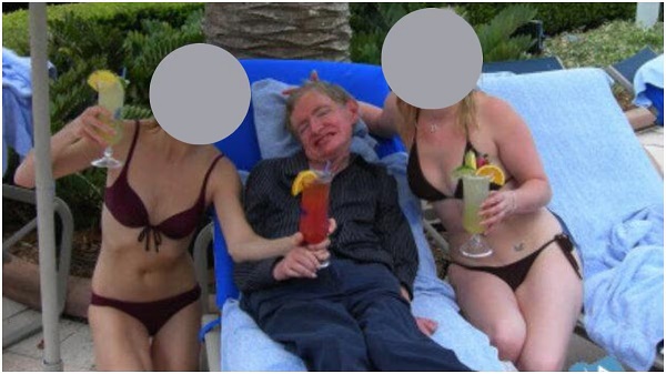 तस्वीर में हॉकिंग दो महिलाओं के बीच लेटे हुए नजर आते हैं। दोनों महिलाओं ने स्विमवियर पहन रखा है और उनकी पहचान छिपाने के लिए चेहरों को काले रंग से ढका गया है। तीनों के हाथों में पेय पदार्थ दिखाई दे रहे हैं। हालांकि यह स्पष्ट नहीं हो सका है कि फोटो कब और किस संदर्भ में ली गई थी।