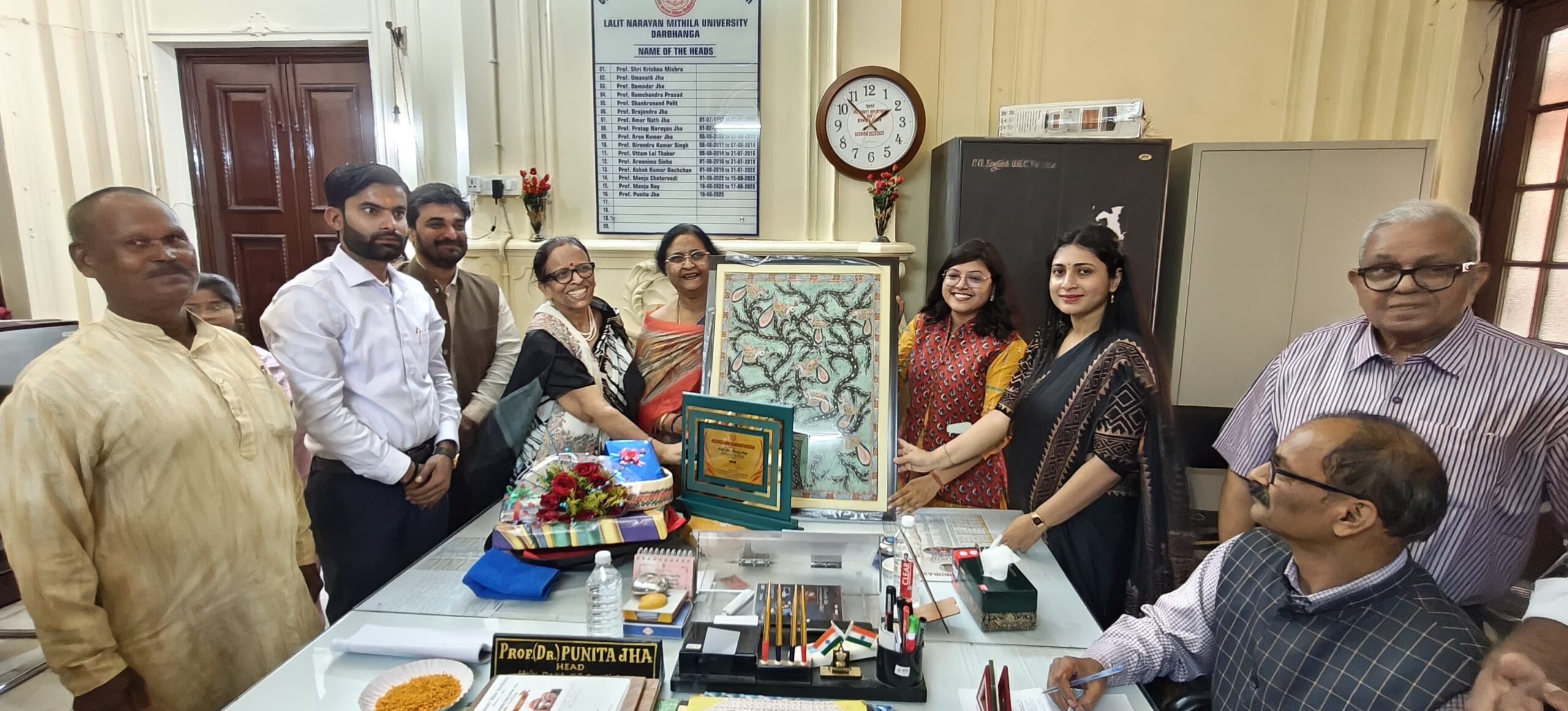 दरभंगा : ललित नारायण मिथिला विश्वविद्यालय, दरभंगा के मानविकी संकायाध्यक्ष प्रो मंजू राय की सेवानिवृत्ति के अवसर पर विश्वविद्यालय अंग्रेजी विभाग में प्रो पुनिता झा की अध्यक्षता में विदाई सह सम्मान कार्यक्रम का आयोजन किया गया, जिसमें पूर्व संकायाध्यक्ष, मानविकी प्रो ए के बच्चन, प्रो मो शाहिद हसन, डॉ अनिल कुमार चौधरी, चिकित्सा पदाधिकारी डॉ गीतेन्द्र ठाकुर, अंग्रेजी के पूर्व प्राध्यापक डॉ अमरेन्द्र शर्मा, डॉ नवीन कुमार सिंह, डॉ संकेत कुमार झा, डॉ शांभवी, डॉ तनीमा, डॉ आर्यिका पॉल, डॉ विमलेश चौधरी, ज्योति कुमारी, सौरभ सुमन, रवि प्रकाश, इमरान अली खान, साधना, श्वेता तथा संस्कृत के प्राध्यापक डॉ आर एन चौरसिया आदि सहित अनेक व्यक्ति उपस्थित थे। प्रो मंजू को पाग, चादर, मोमेंटो, बुके, मिथिला पेंटिंग सहित अन्य गिफ्टों से विभागीय शिक्षकों ने सम्मानित किया। वहीं विभागीय शोधार्थी एवं विद्यार्थियों ने भी डायरी, पेन, स्मृतिचिह्न, बुके, फूलमाला आदि प्रदान कर उनके प्रति आभार व्यक्त किया।