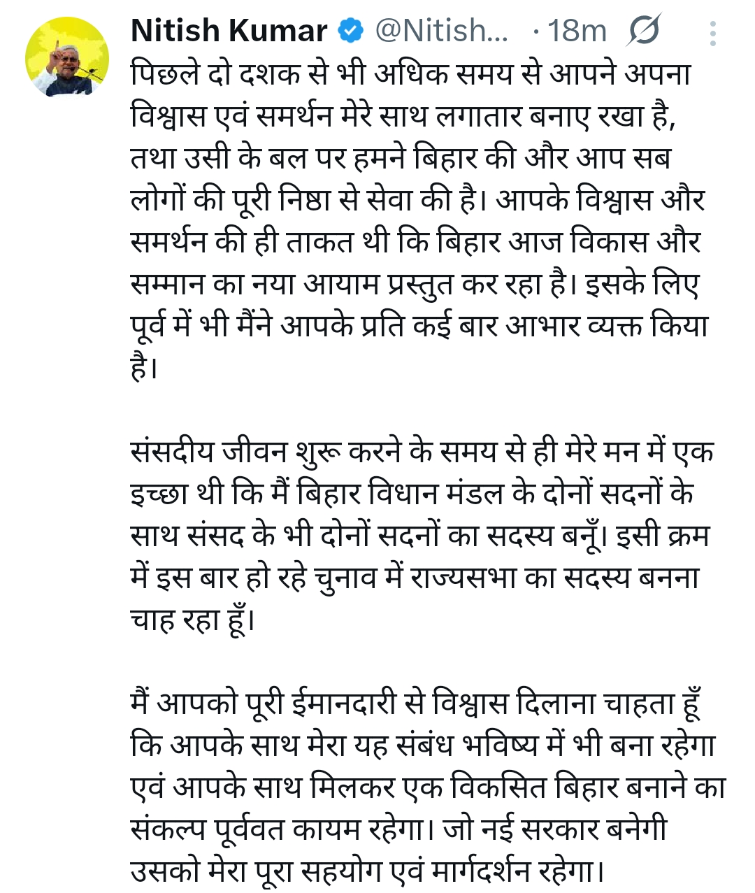 प्रादेशिक बिहार नीतीश कुमार ने किया राजसभा जाने का एलान ! Posted on March 5, 2026 Author admin Comment(0)