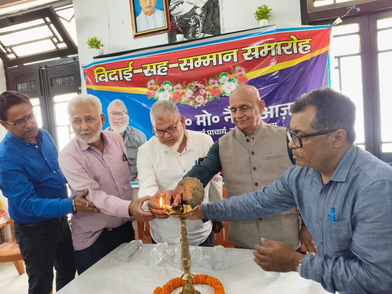 दरभंगा : ललित नारायण मिथिला विश्वविद्यालय, दरभंगा के विश्वविद्यालय इतिहास विभाग द्वारा अपने पूर्व अध्यक्ष एवं प्राध्यापक प्रो मो नैयर आजम के गत 31 मार्च को अवकाश ग्रहण करने पर विभाग में कार्यक्रम आयोजित कर उनकी भावभीनी विदाई देने हुए उन्हें सम्मानित किया गया। विभागाध्यक्ष डॉ. अनिल कुमार चौधरी की अध्यक्षता में आयोजित कार्यक्रम में सामाजिक विज्ञान के संकायाध्यक्ष प्रो. शाहिद हसन- मुख्य अतिथि, संस्कृत विभाग के प्रभारी अध्यक्ष डॉ. आरएन चौरसिया- सम्मानित अतिथि, पीजी एथलेटिक्स के अध्यक्ष डॉ. प्रियंका राय एवं संस्कृत- प्राध्यापिका डॉ. ममता स्नेही- विशिष्ट अतिथि के रूप में तथा विभागीय प्राध्यापक डॉ. आमिर अली खान, डॉ. अमिताभ कुमार, डॉ. मनीष कुमार, डॉ. ज्योति प्रभा, मारवाड़ी कॉलेज के डॉ. फारूक आजम, सहायक मुकेश कुमार, शोधार्थियों एवं विद्यार्थियों की ओर से अंशु अग्रवाल, सोनी कुमारी, रंजीत कुमार, प्रत्युष आदि ने विचार व्यक्त किया।