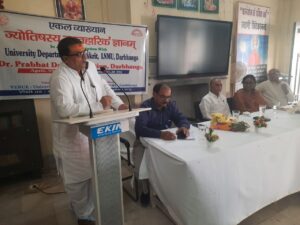 बीज वक्ता एवं कार्यक्रम के संयोजक डॉ आर एन चौरसिया ने कहा कि ज्योतिष भारतीय संस्कृति और परंपरा का एक महत्वपूर्ण अंग है जो जीवन को समझने और सही दिशा देने का भी विज्ञान है। इसका हमारे दैनिक जीवन से बहुत ही गहरा संबंध है। कहा कि पारंपरिक दृष्टि से ज्योतिष भाग्य और कर्म के मिश्रण को दिखाता है और बतलाता है कि किस समय कौन-सा प्रयास करने पर फल बेहतर मिल सकता है। ज्योतिष हमें महत्वपूर्ण निर्णयों- यज्ञ, विवाह, गृह-प्रवेश, मुंडन, उपनयन, व्यापार- प्रारंभ आदि के शुभ मुहूर्त चुनने और अनुकूलता से कार्य प्रारंभ कर अपने प्रयासों के फल को अधिक लाभकारी बनाने में मदद करता है। इसका उद्देश्य भाग्य पर आश्रित होना नहीं, बल्कि वर्तमान कर्म को जागरुक एवं सुदृढ़ बनाकर भविष्य को उन्नत करना है। दर्शनशास्त्र विभागाध्यक्ष डॉ शिवानन्द झा ने कहा कि ज्योतिष हमारे व्यावहारिक जीवन से जुड़ा हुआ शास्त्र है। ‘समय का विज्ञान’ कहलाने वाला ज्योतिष का छात्र अपने जीवन में सदुपयोग कर लाभ उठा सकते हैं।