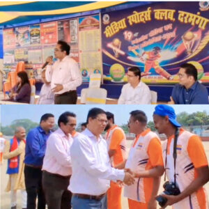 दरभंगा। ललित नारायण मिथिला विश्वविद्यालय परिसर स्थित डॉ नागेंद्र झा स्टेडियम में 19 वीं प्रमंडलीय मीडिया कप क्रिकेट टूर्नामेंट का शुभारंभ हुआ। मीडिया कप का उद्घाटन मैच राष्ट्रीय सहारा और दैनिक भास्कर के बीच खेला गया जिसमें दैनिक भास्कर की टीम ने राष्ट्रीय सहारा को 20 रनों से पराजित कर दिया। दैनिक भास्कर ने टॉस जीतकर पहले बल्लेबाजी करते हुए निर्धारित 20 ओवर भी नहीं खेल सकी और 16 वें ओवर में 110 रनों पर ऑल आउट हो गई। भास्कर की ओर से राजेश ने सर्वाधिक 37 रन जबकि राघव ने 27 रन बनाए। राष्ट्रीय सहारा की ओर से ऋषि, नीतीश और सोनू ने 3-3 विकेट लिए। जवाब में बल्लेबाजी करने उतरी राष्ट्रीय सहारा की टीम 16 वें ओवर 90 रन पर ऑल आउट हो गयी। सहारा की ओर से सोनू ने सर्वाधिक 31, नटवर ने 21 रनों का योगदान दिया। दैनिक भास्कर की ओर से अमरजीत ने 6 विकेट जबकि विक्की, राघव, हरिमोहन, राजेश ने एक – एक विकेट लिया। इस प्रकार दैनिक भास्कर की टीम 20 रनों से विजयी हुई। मैच में निर्णायक की भूमिका सुजीत ठाकुर, उत्सव ने निभाई। स्कोरर के रूप प्रत्यूष कुमार मौजूद रहे। 16 अप्रैल को मीडिया कप का दूसरा मैच इलेक्ट्रॉनिक मीडिया एवं इनसाइट मिथिला के बीच खेला जाएगा। मैच से पूर्व उद्घाटन के दौरान उपस्थित अतिथिगणों ने खिलाड़ियों का हौसला वर्धन किया। लगातार 19वे वर्ष इस आयोजन केलिए मीडिया स्पोर्ट्स क्लब की प्रशंसा की। मीडिया स्पोर्ट्स क्लब द्वारा सभी अतिथियों को प्रतीक चिन्ह प्रदान कर सम्मानित किया गया। डब्लूआईटी के निदेशक प्रो. अजयनाथ झा ने इस मैदान में अपने पुराने दिनों को याद करते हुए कहा कि वे इस मैदान में 1976 से खेलते आ रहे हैं। अब इस आयोजन में अतिथि के रूप में मौजूदगी सुखद एहसास है। खेल पदाधिकारी अमृत कुमार झा ने आयोजकों को बधाई देते हुए विश्विद्यालय,उनके विभाग की ओर से हर प्रकार के सहयोग का आश्वासन दिया। उप खेल पदाधिकारी प्रियंका राय ने अपने संबोधन में कहा मीडियाकर्मियों को कलम और कैमरे के साथ हमेशा देखती हैं। पर आज बल्ले और गेंद के साथ भी देखकर अलग अनुभूति हो रही है। जिला सूचना एवं जनसंपर्क पदाधिकारी सत्येंद्र प्रसाद ने दरभंगा जिला के मीडियाकर्मियों के साथ अपने अनुभव को साझा किया। उनके सामाजिक दायित्वों के निर्वहन की भी प्रशंसा की। जिला आपूर्ति पदाधिकारी, सुरेश कुमार ने कहा वे अन्य जिलों में भी काम कर चुके हैं। पर इतने उत्साह के साथ मीडिया कप का आयोजन केवल दरभंगा में ही देखने को मिला है। उद्घाटन सत्र के दौरान मंच संचालन नवीन सिन्हा ने किया। मीडिया स्पोर्ट्स क्लब के पदाधिकारियों में आयोजन समिति के अध्यक्ष गुंजन कुमार, कार्यकारी अध्यक्ष अभिषेक कुमार, महासचिव गिरीश कुमार, कार्यकारी महासचिव संजय कुमार तथा कोषाध्यक्ष कौशल किशोर 