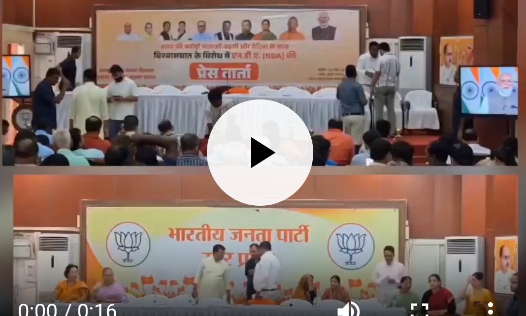 अन्य लखनऊ : BJP मुख्यालय में CM योगी की प्रेस वार्ता से पहले बदला गया पोस्टर ! पहले लगी थी सारे नेताओं की फोटो, अब लिखा है सिर्फ BJP उत्तर प्रदेश Posted on April 19, 2026 Author admin Comment(0) https://newswatch.co.in/wp-content/uploads/2026/04/TzqHjr6BQDsDYCqI.mp4