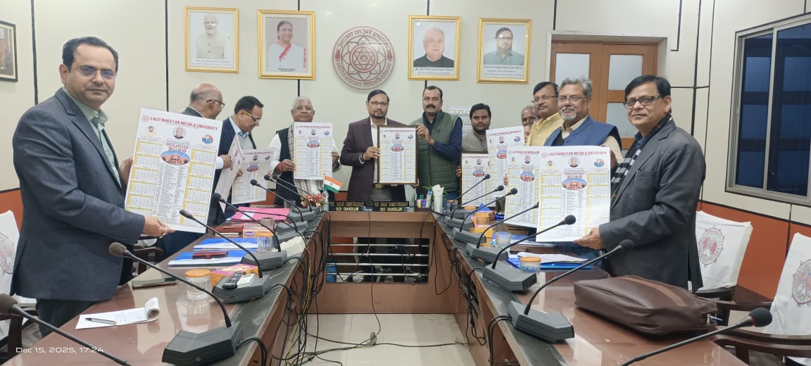 साल 2026 की अवकाश तालिका से विश्वविद्यालय को शैक्षणिक एवं प्रशासनिक कार्य-योजना तैयार करने में होगी सुविधा- कुलपति दरभंगा : ललित नारायण मिथिला विश्वविद्यालय, दरभंगा के कुलपति प्रोफेसर संजय कुमार चौधरी ने वर्ष 2026 की अवकाश तालिका जारी करते हुए कहा कि इस अवकाश तालिका को बिहार लोकभवन द्वारा जारी दिशा-निर्देश के आलोक में विश्वविद्यालय […]